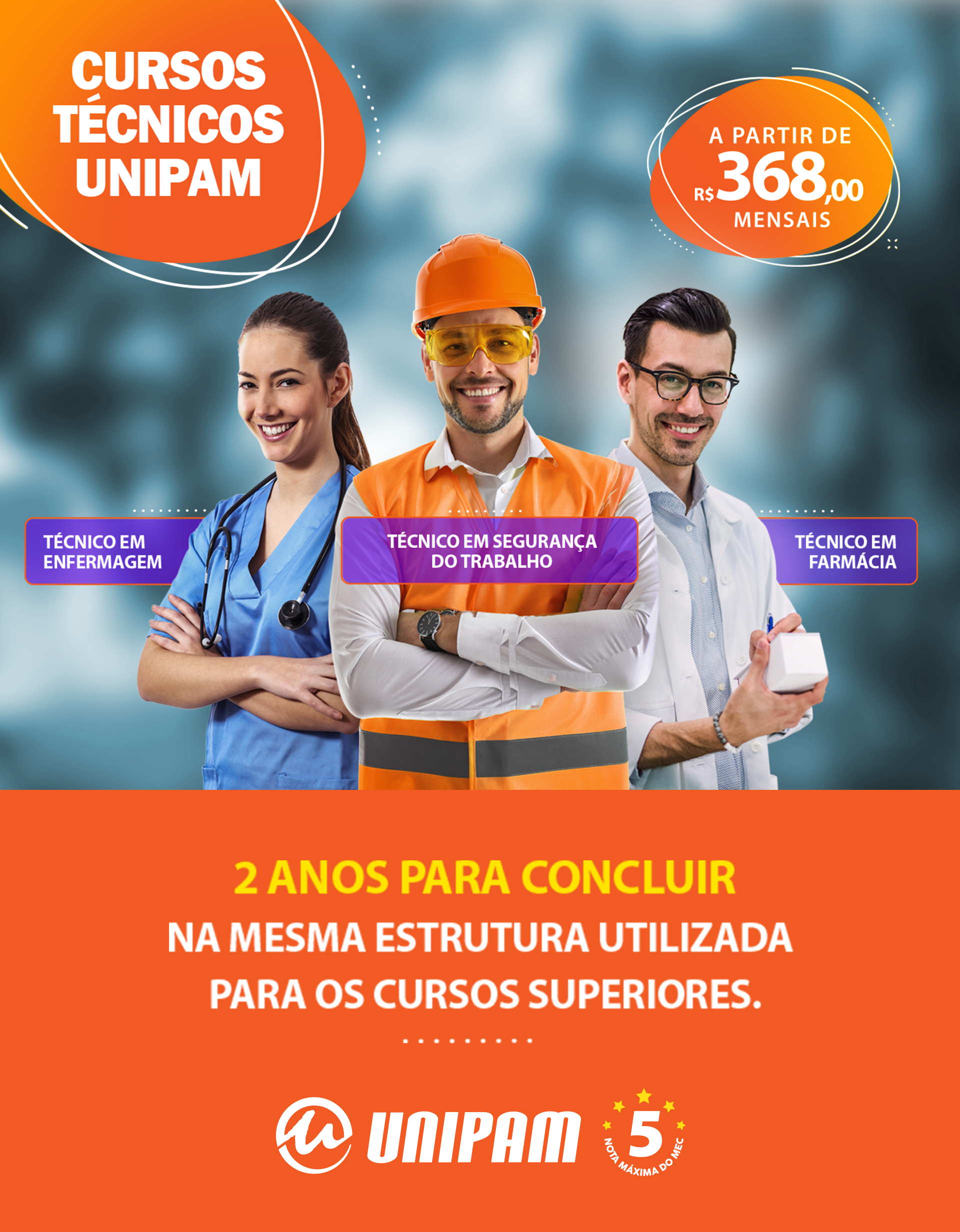 Para não deixar o mercado esperando, o Centro Universitário de Patos de Minas (UNIPAM) oferece, a partir de março, os cursos técnicos que a população tanto esperava: Enfermagem, Farmácia e Segurança do Trabalho.