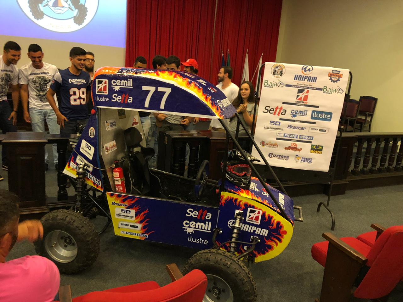 Foi realizado na última segunda-feira (09), no salão do júri do Centro Universitário de Patos de Minas (UNIPAM), o lançamento do veículo mini baja, desenvolvido por alunos de Engenharia Mecânica, sob orientação do professor Vinícius Resende Rocha.