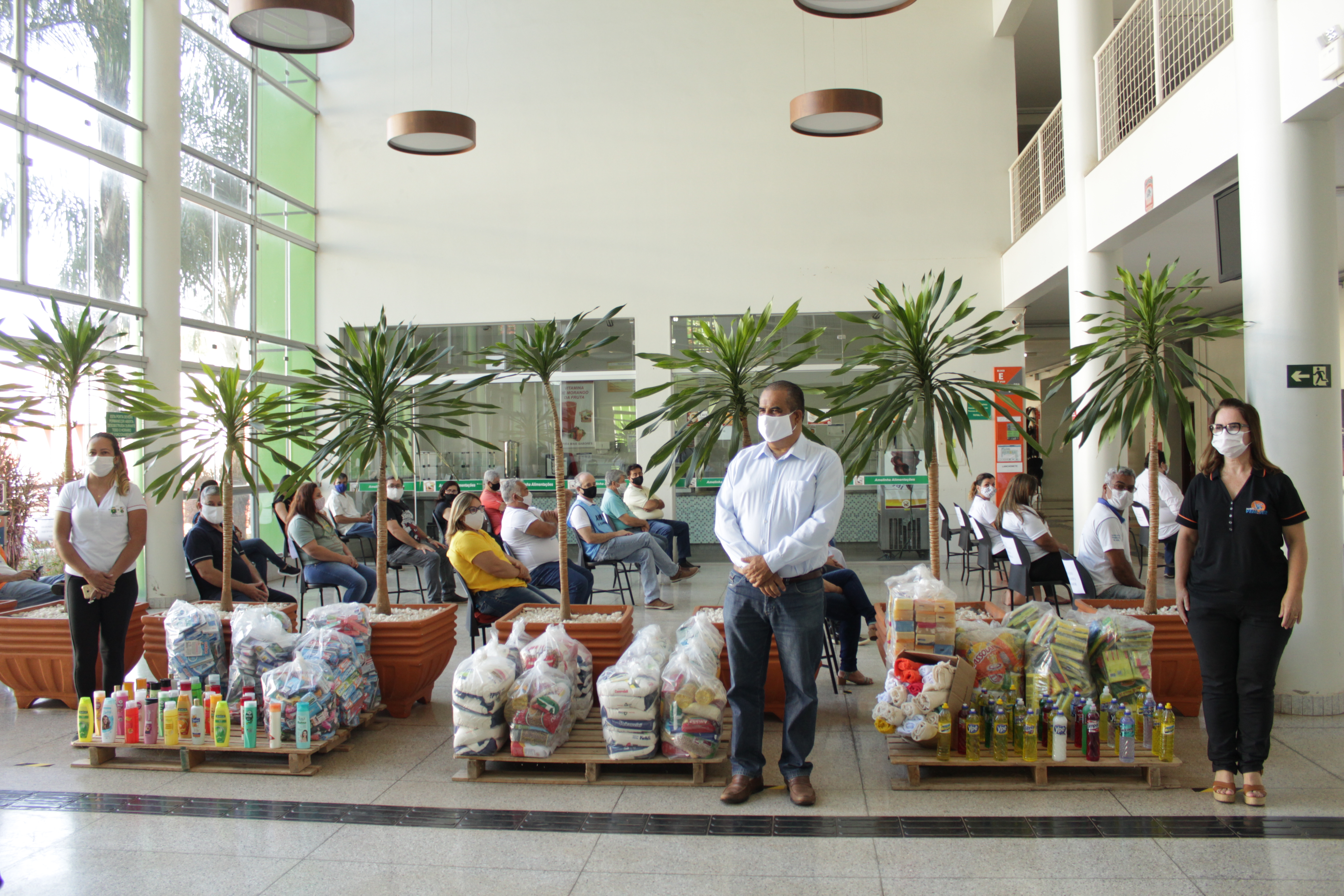 A Fundação Educacional de Patos de Minas (FEPAM) e o Centro Universitário de Patos de Minas (UNIPAM) realizaram na manhã desta sexta-feira (04), a solenidade de entrega de cerca de três toneladas de alimentos, 260 kits de itens de higiene pessoal e 287 kits de itens de limpeza. Os donativos foram doados pelos alunos, por meio da campanha “Cidade Solidária”.