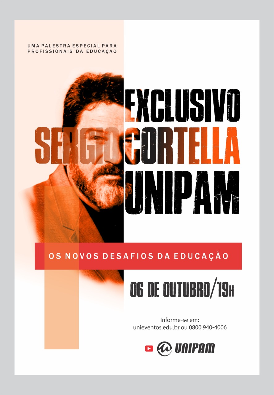 O Centro Universitário de Patos de Minas (UNIPAM) promoverá no dia 06 de outubro (terça-feira), às 19h, por meio do canal UNIPAM, no YouTube, uma palestra com Mário Sérgio Cortella.