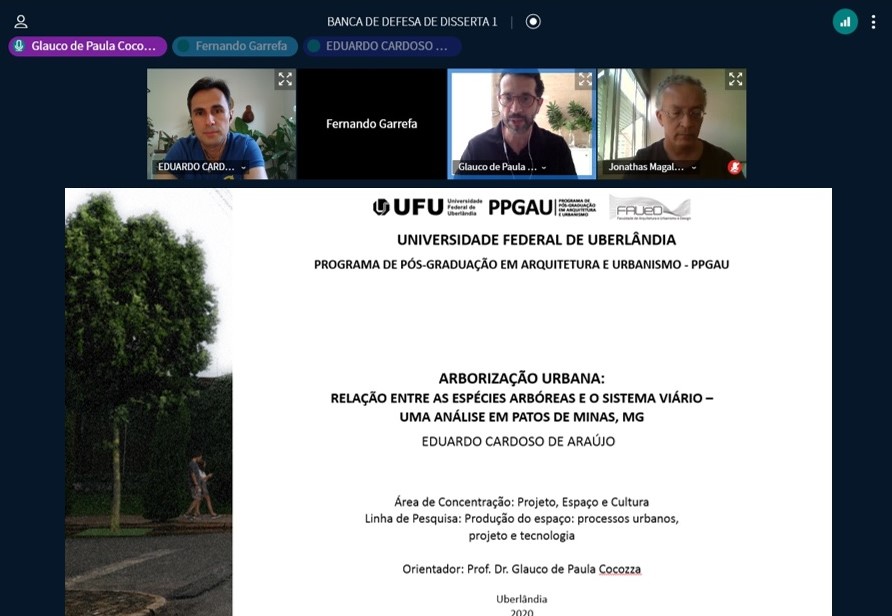 A banca avaliadora foi composta pelos professores Fernando Garrefa, da UFU; Jonathas Magalhães, da Pontifícia Universidade Católica de Campinas (PUC); e pelo orientador do projeto, Glauco Cocozza.