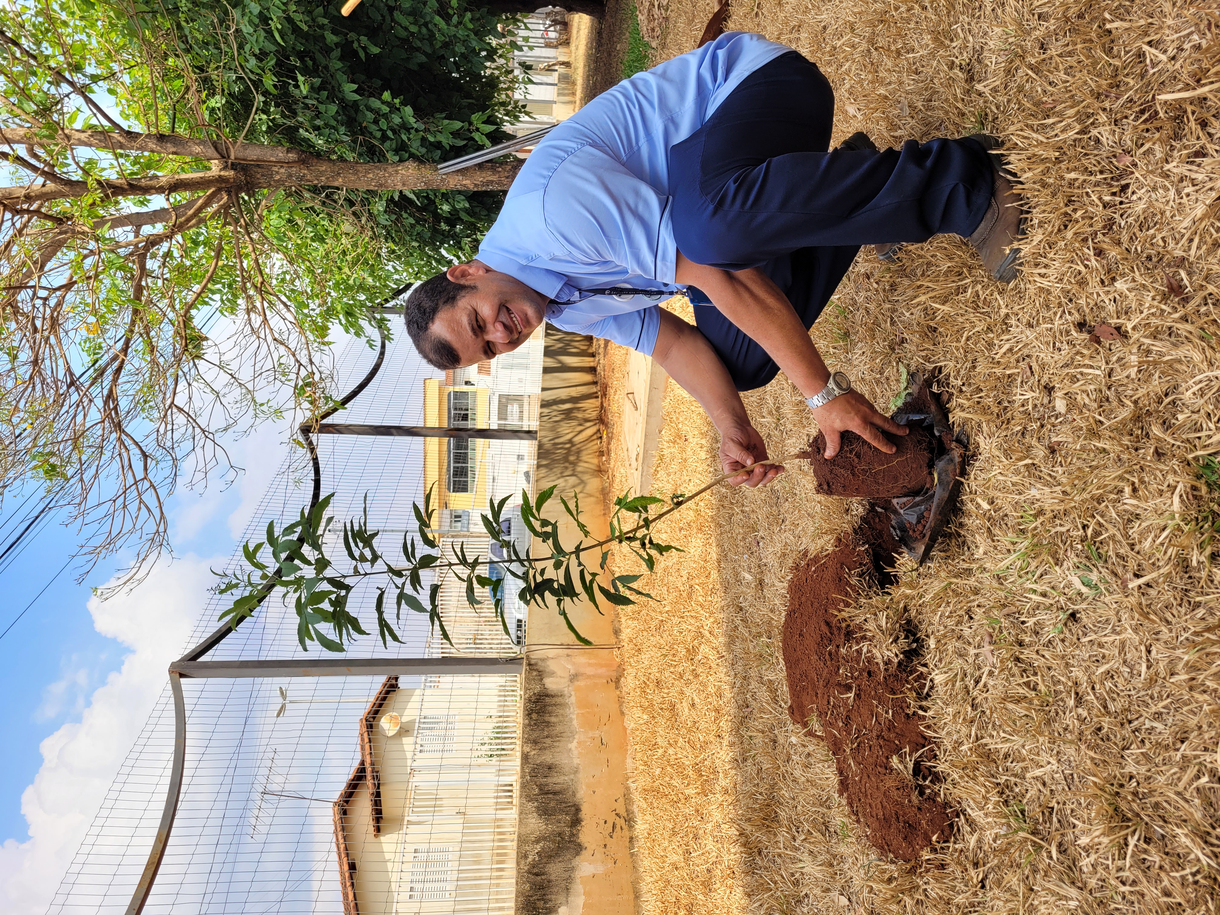 O plantio foi realizado por colaboradores da instituição, com o intuito de estimular e de destacar a importância da arborização e do reflorestamento em áreas urbanas.