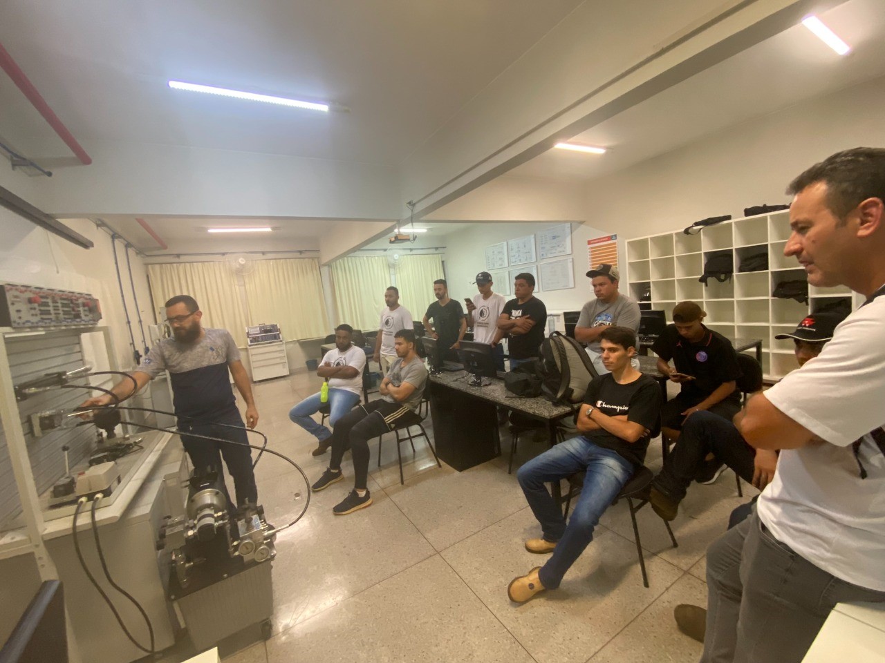 Durante a aula, os alunos conheceram os principais elementos utilizados em projetos de sistemas hidráulicos, a forma adequada para utilização dos componentes, as normas técnicas e os cuidados necessários ao trabalhar com esses sistemas.