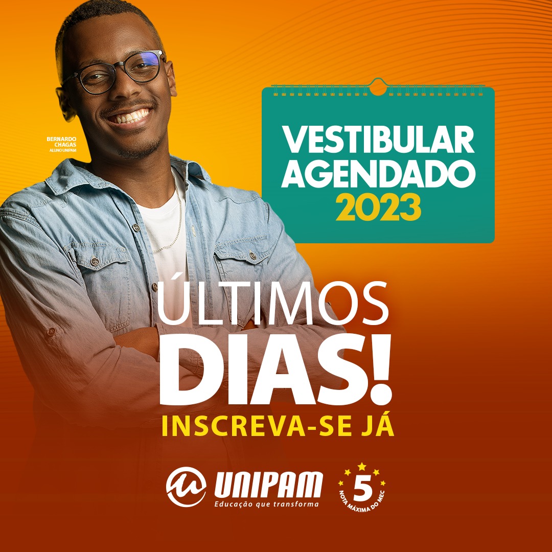 Estes são os últimos dias para se inscrever no Vestibular Agendado do Centro Universitário de Patos de Minas (UNIPAM). O processo é a última oportunidade para ingressar em um dos cursos de graduação presencial, ofertados pelo UNIPAM, em 2023. O Vestibular Agendado está aberto para todos os cursos da instituição, exceto Medicina.
