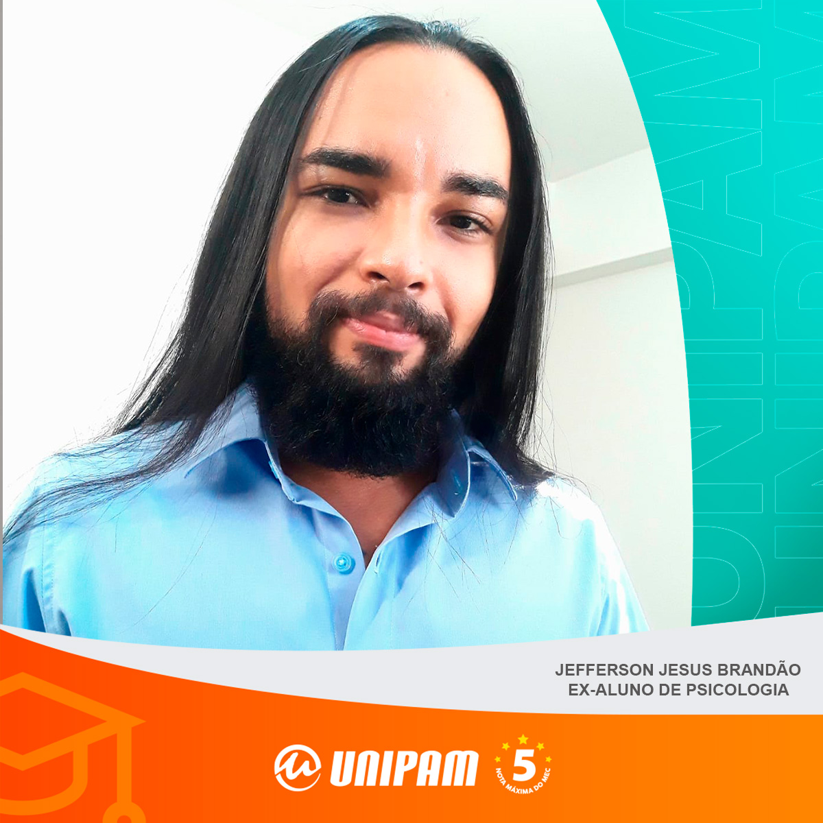 Jefferson Jesus Brandão, ex-aluno do curso de Psicologia do Centro Universitário de Patos de Minas (UNIPAM), concluiu recentemente o Programa de Mestrado em Psicologia, da Universidade Católica de Brasília (UCB).