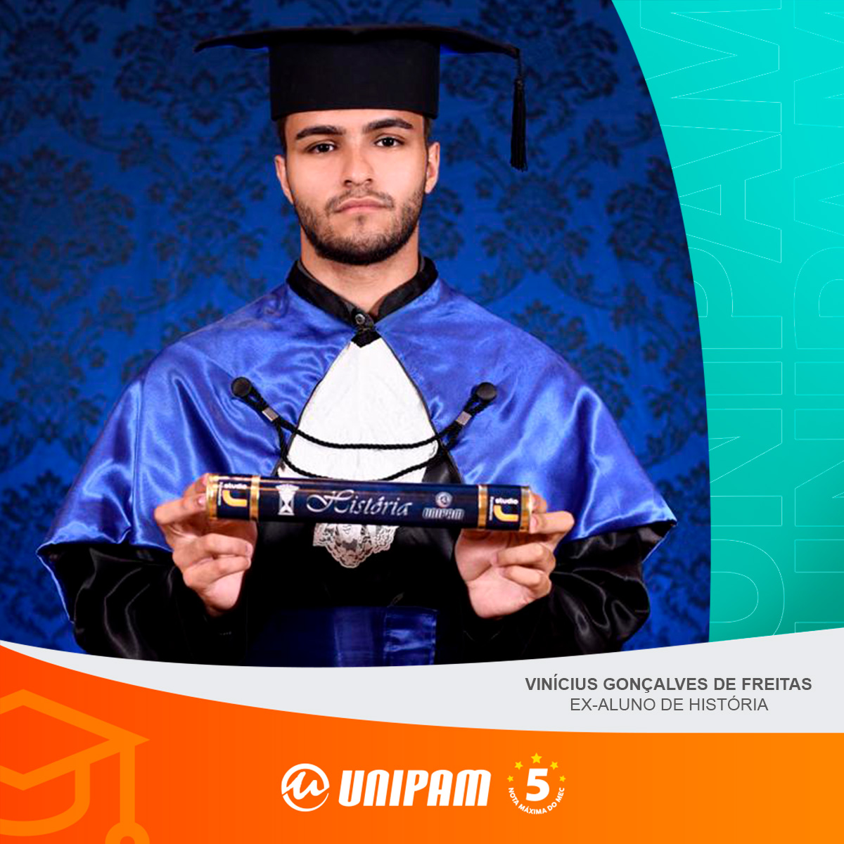 O egresso concluiu o curso de História, no UNIPAM, em 2020.