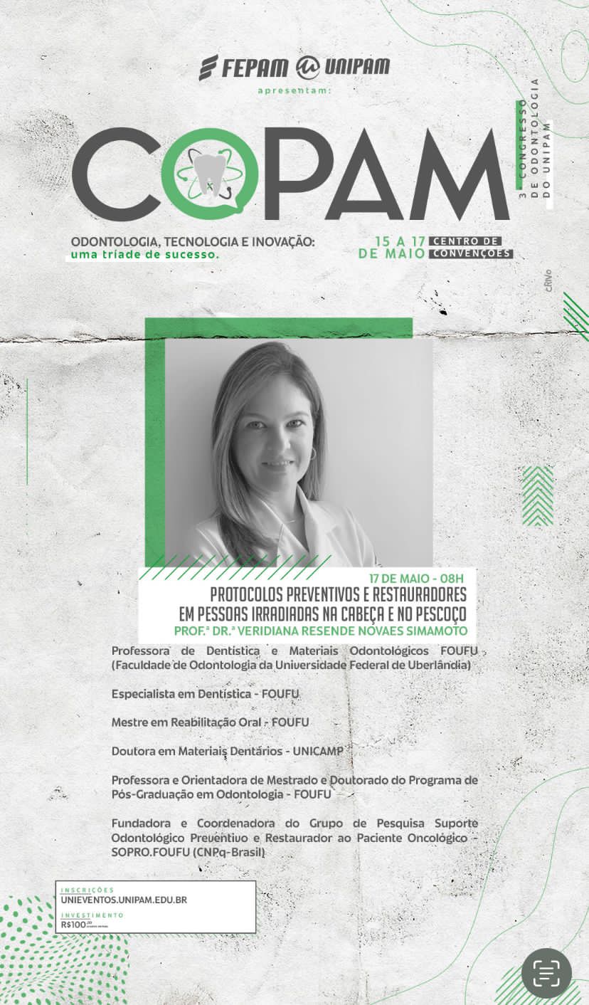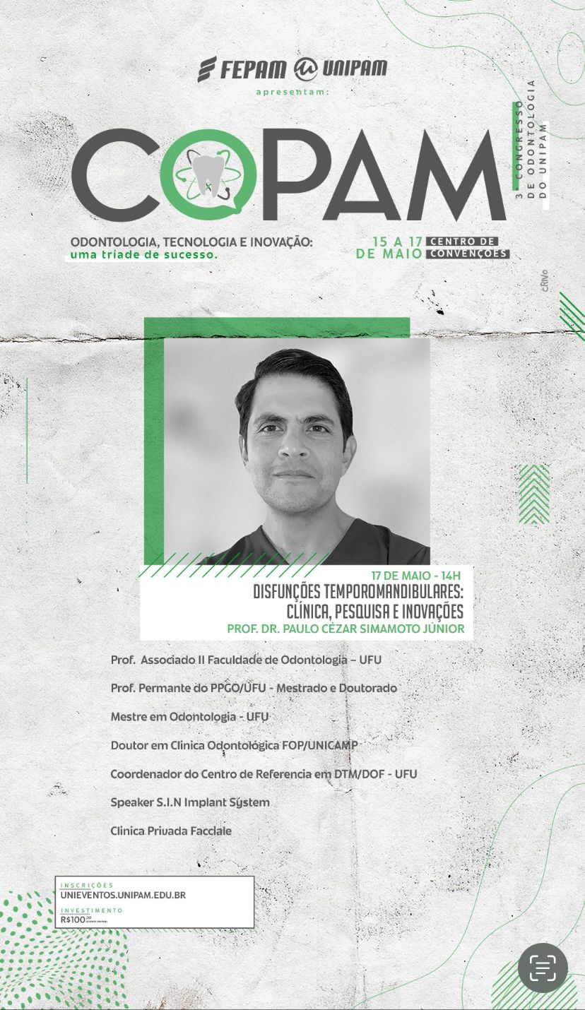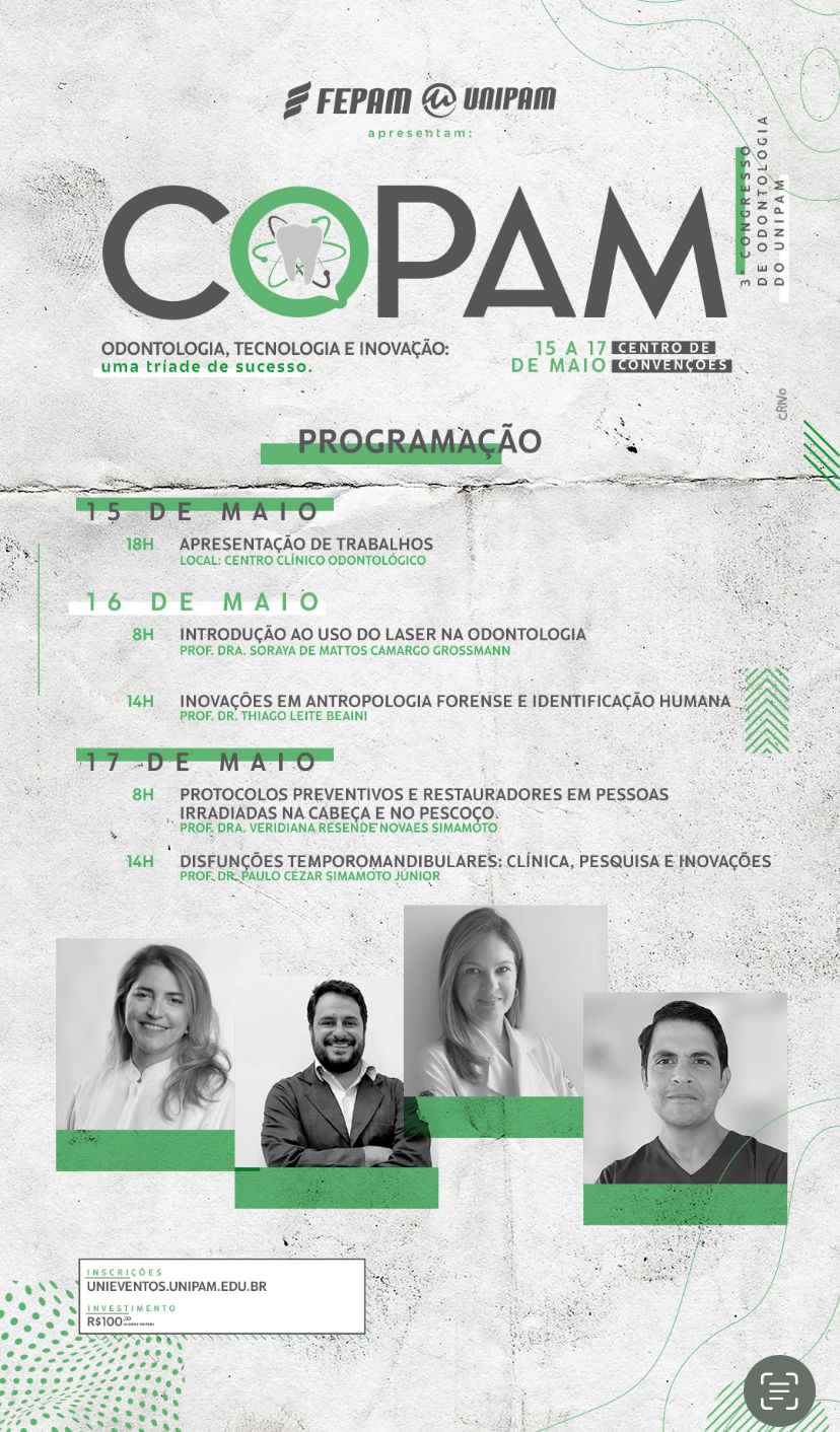 O Centro Universitário de Patos de Minas (UNIPAM) promoverá de 15 a 17 de maio, o 3º Congresso de Odontologia do UNIPAM (COPAM). Na oportunidade, será abordado o tema “Odontologia, Tecnologia e Inovação: Uma Tríade de Sucesso”.