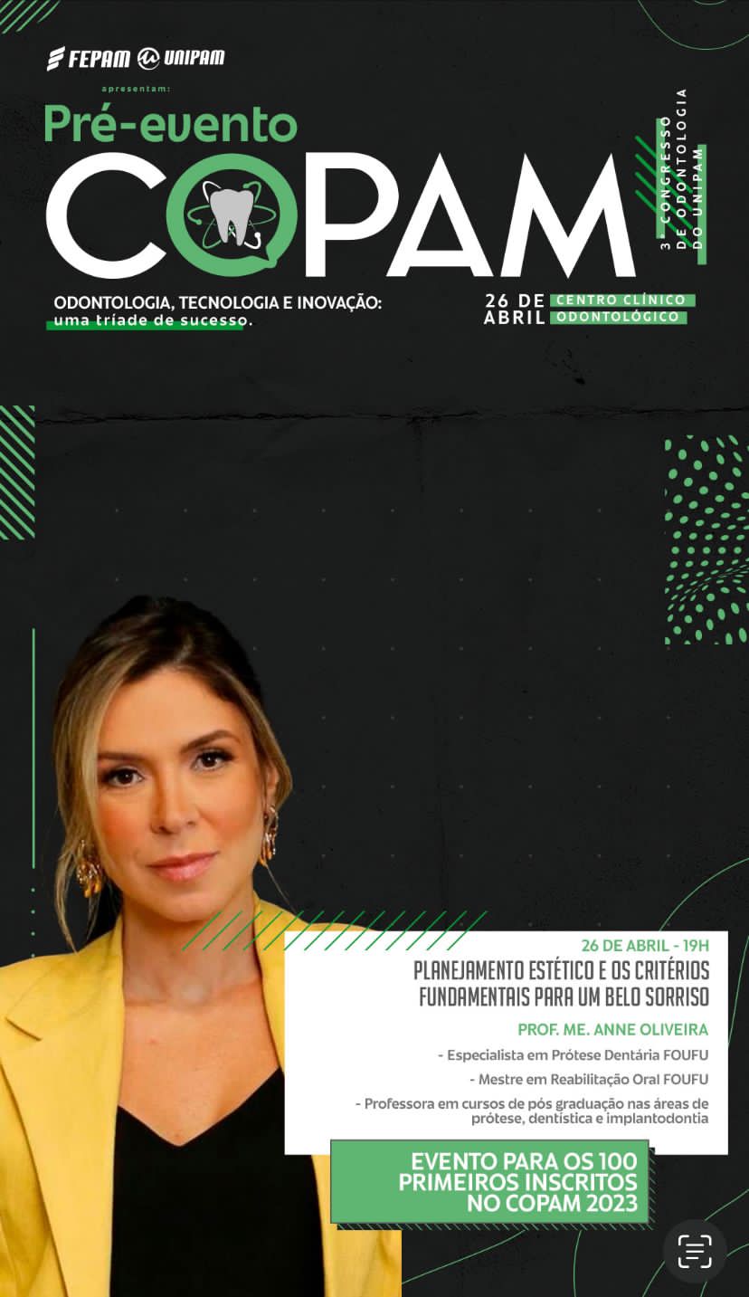 No dia 26 de abril (quarta-feira), às 19h, será ministrada a palestra “Planejamento Estético e os Critérios Fundamentais para um Belo Sorriso”, com a mestre em Reabilitação Oral, Anne Oliveira.