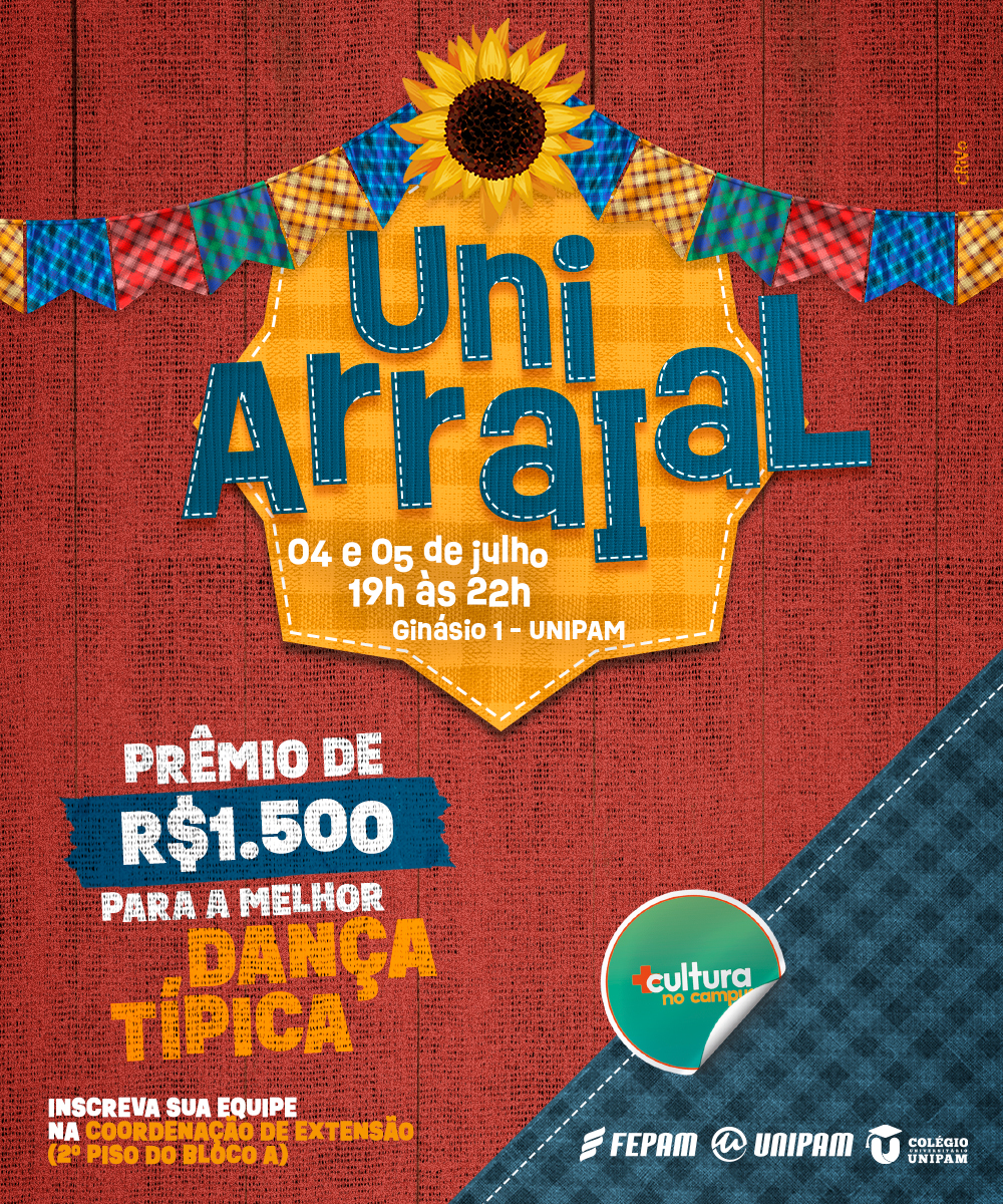 A Fundação Educacional de Patos de Minas (FEPAM), o Centro Universitário de Patos de Minas (UNIPAM) e o Colégio Universitário promoverão, nos dias 04 e 05 de julho, das 19h às 22h, no Ginásio I, o Uniarraial.