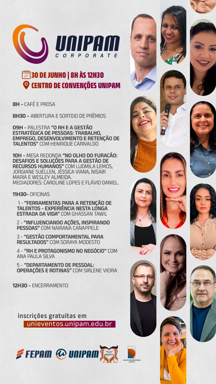 O Centro Universitário de Patos de Minas (UNIPAM), em parceria com o Coopera RH e o Grupo Dimensional, promoverão no dia 30 de junho (sexta-feira), às 8h, no Centro de Convenções e Eventos (CCE), o “UNIPAM Corporate: Encontro Regional de Gestores de Recursos Humanos”.