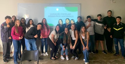 Alunos do 1º primeiro período do curso de Fisioterapia do Centro Universitário de Patos de Minas (UNIPAM), orientados pela professora, Fabiana Cristina Ferreira, ministraram uma palestra com o tema “Primeiros Socorros em casos de Luxação Patelar”, na Escola Estatual Professor José Hugo Guimarães, em Carmo do Paranaíba.