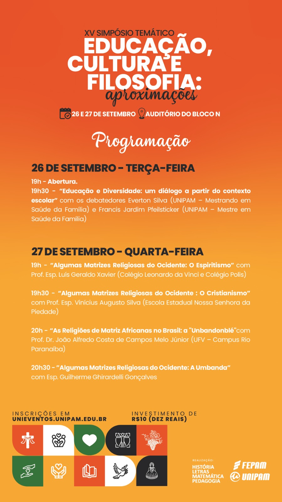 O investimento é de R$10,00. Os interessados deverão realizar sua inscrição no site https://unieventos.unipam.edu.br/.