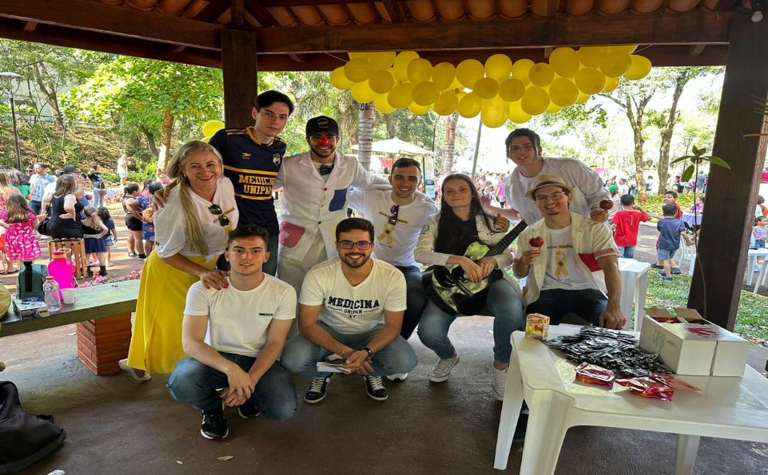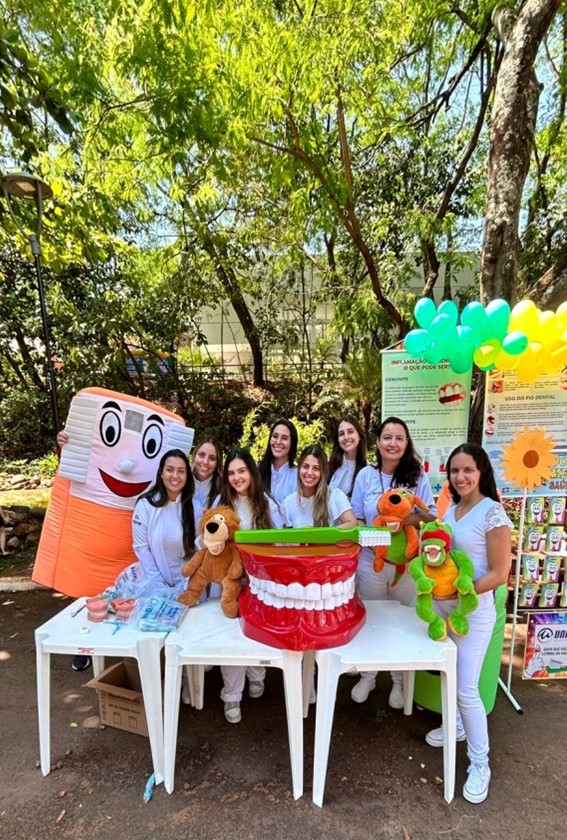 Alunos do Centro Universitário de Patos de Minas (UNIPAM), integrantes da Liga Acadêmica de Enfermagem na Atenção Básica (LAEAB), da Liga Acadêmica de Medicina de Família Comunidade (LAMFAC) e da Liga Acadêmica de Saúde e Alegria (LASA), sob orientação da professora Marilene Rivany Nunes, juntamente com os alunos do curso Técnico em Enfermagem, acompanhados pela professora Lea Polyane Silva, e os alunos do 8º período de Odontologia, sob orientação da professora Thays Cristiny Simão Melo, participaram no dia 16 de setembro (sábado), da “I Festa da Primavera”, realizada no Parque do Mocambo.