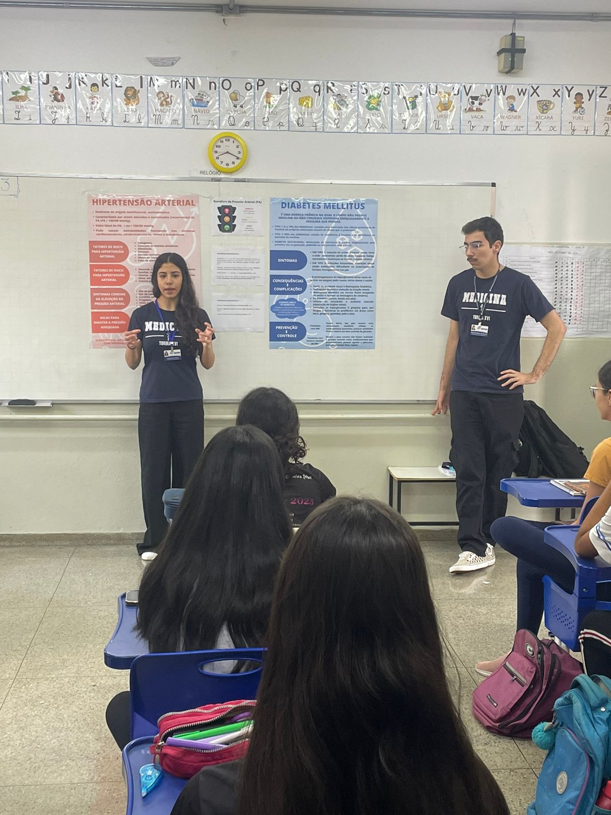 A ação foi desenvolvida na disciplina de Projeto Integrador e objetivou conscientizar os estudantes sobre a hipertensão arterial e a diabetes.