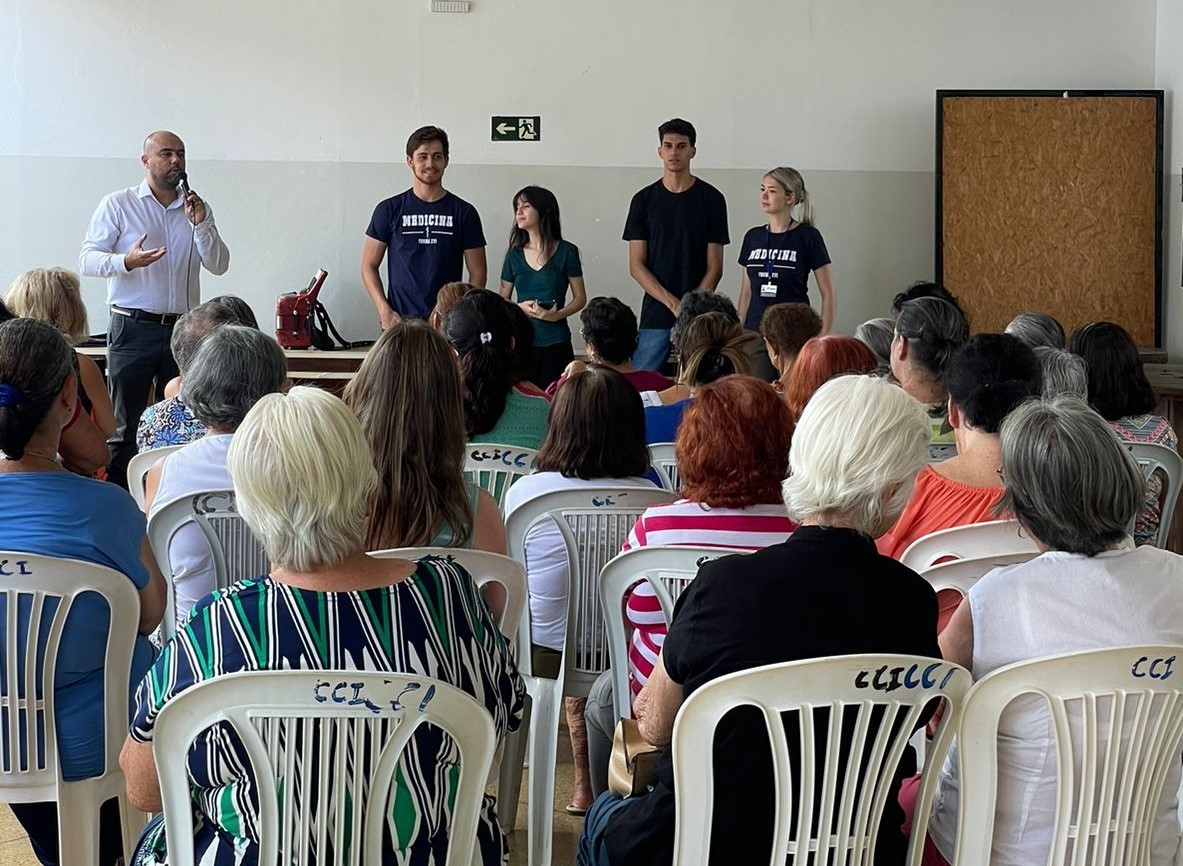 Alunos do 2º período do curso de Medicina do Centro Universitário de Patos de Minas (UNIPAM), sob orientação das professoras Daniele Gonçalves e Rosiane Soares, realizaram no dia 07 de novembro (terça-feira), uma ação no Centro de Convivência da Terceira Idade.