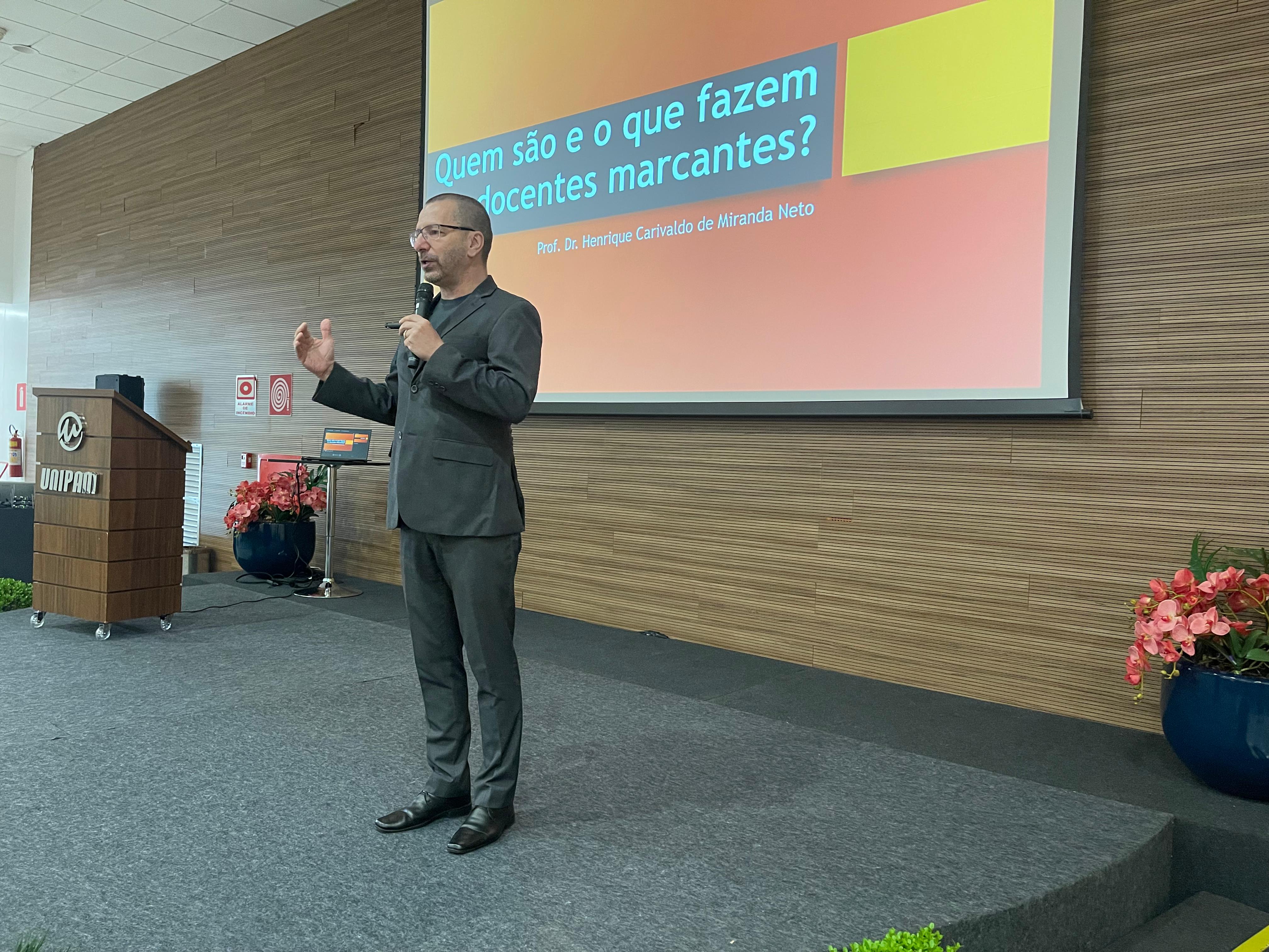 Para encerrar, o reitor do UNIPAM, professor Dr. Henrique Carivaldo de Miranda Neto, ministrou a palestra “Quem são e o que fazem os docentes marcantes”.