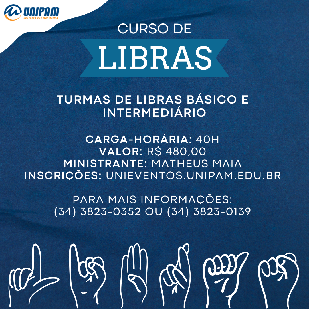 O Centro Universitário de Patos de Minas (UNIPAM) promoverá, de 11 de março a 03 de julho, o curso Língua Brasileira de Sinais (Libras). Esse será ofertado nos níveis básico e intermediário.