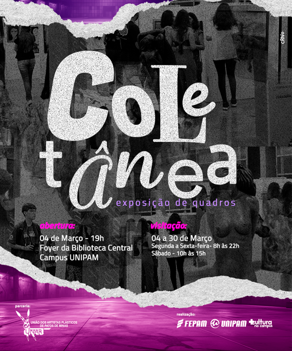 O Centro Universitário de Patos de Minas (UNIPAM) realizará, na próxima segunda-feira (04), às 19h, no foyer da Biblioteca, a abertura da temporada de exposições artísticas na instituição.