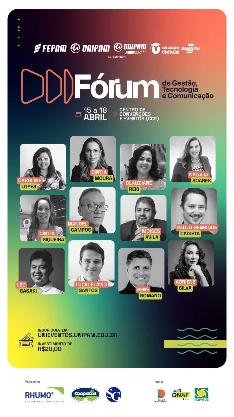 O Centro Universitário de Patos de Minas (UNIPAM) promoverá, de 15 a 18 de abril, no Centro de Convenções e Eventos (CCE) e no campus da instituição, o “Fórum de Gestão, Tecnologia e Comunicação”. O evento é uma continuidade do Fórum Gerencial e passa a adotar, a partir deste ano, uma nova nomenclatura a fim de consolidar as três áreas.
