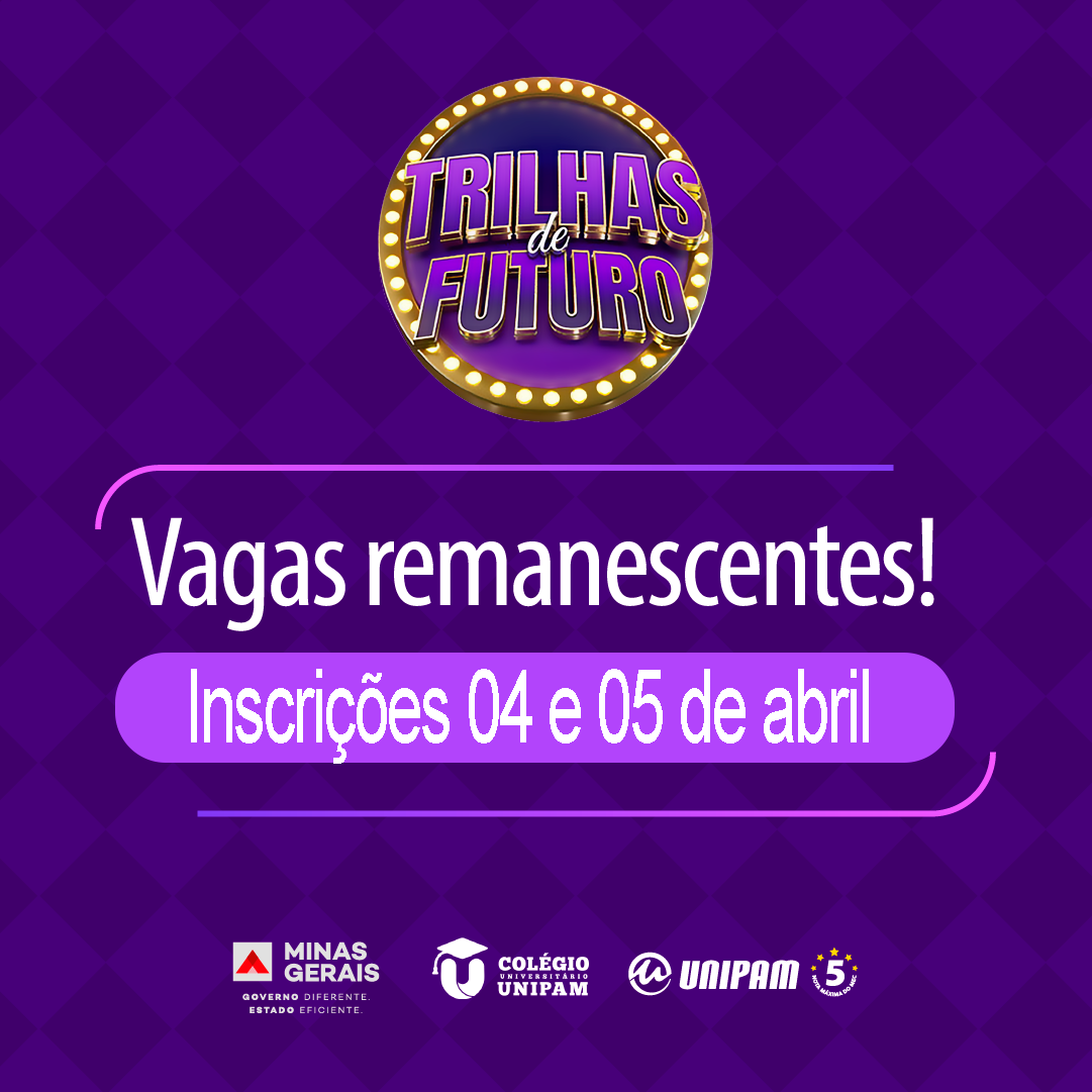 O Colégio Universitário inicia, nesta quinta-feira (04), as matrículas para as últimas vagas remanescentes do “Trilhas de Futuro”. O programa, idealizado pelo governo do Estado de Minas Gerais, objetiva capacitar jovens e adultos para atuarem no mercado de trabalho por meio da formação técnica gratuita. Além da gratuidade do curso, os estudantes receberão auxílio de R$400,00 para transporte e alimentação.