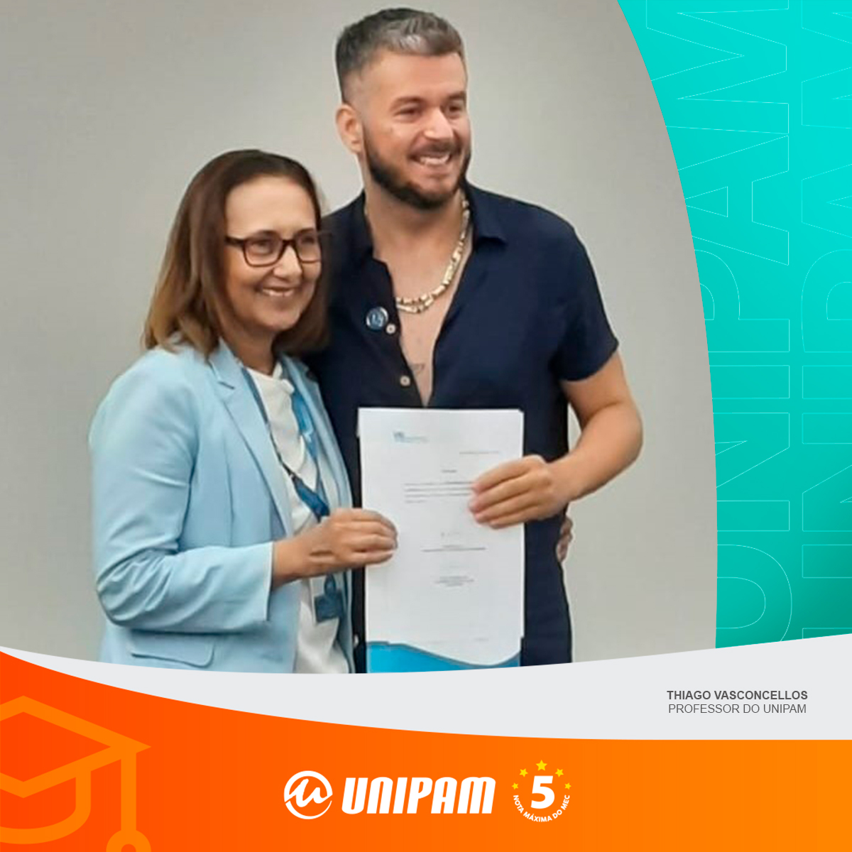 Thiago Henrique Ferreira Vasconcellos, professor do Centro Universitário de Patos de Minas (UNIPAM), recebeu, no dia 03 de abril (quarta-feira), o título de especialista em gerontologia, pela Sociedade Brasileira de Geriatria e Gerontologia (SBGG).