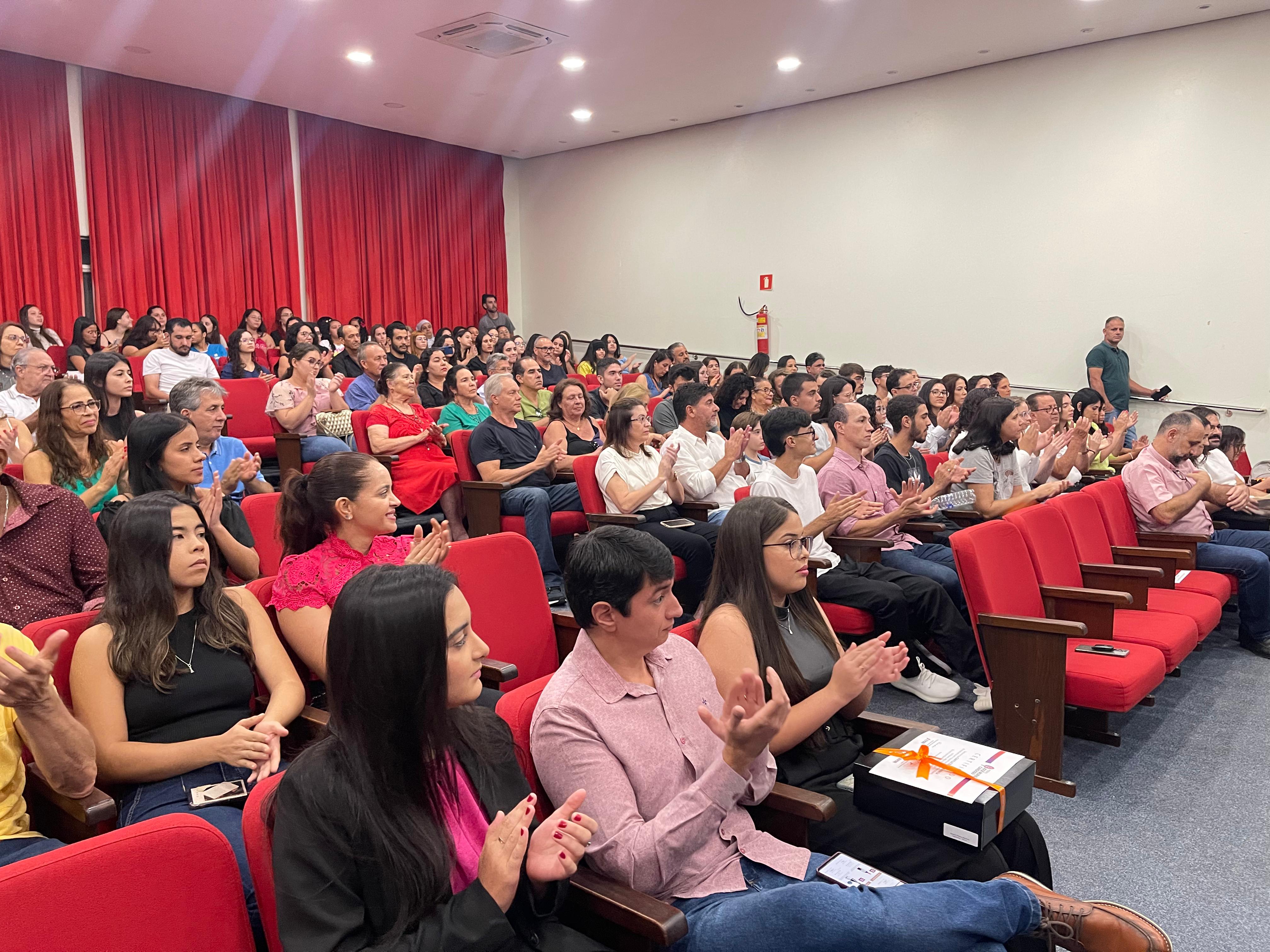 A solenidade contou com a presença do presidente da FEPAM, Paulo Hartmann; do reitor do UNIPAM, professor Dr. Henrique Miranda; da vice-reitora do UNIPAM, professora Dra. Sandra Soares; de coordenadores de curso; de professores; e de familiares dos alunos homenageados.