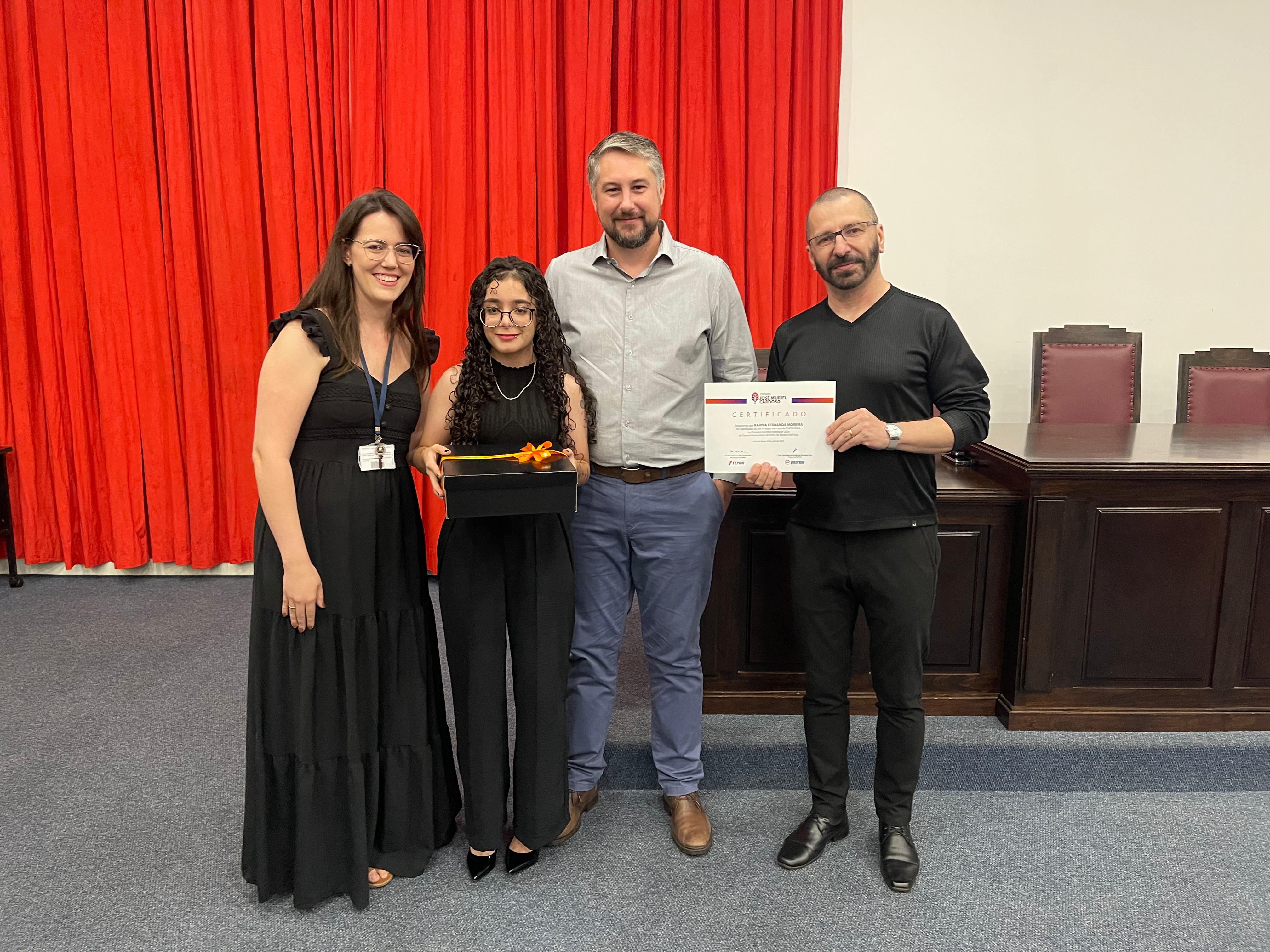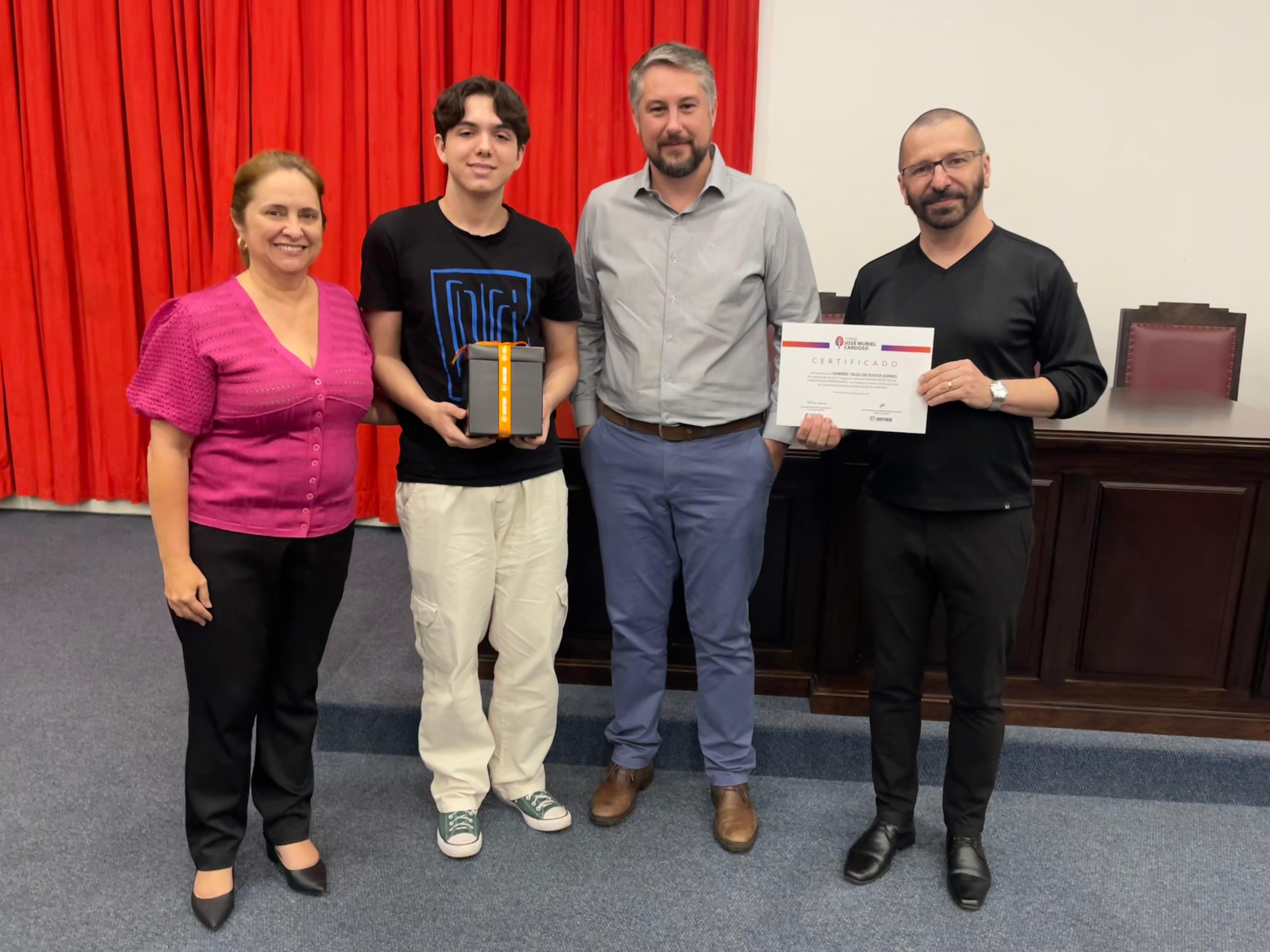 Na oportunidade, o aluno Waber de Medeiros Bernardino, aluno do curso de Sistemas de Informação, foi classificado em 1º lugar geral no Processo Seletivo/2024. Durante o evento, também foram homenageados os alunos classificados em 1º lugar de cada curso. São eles: