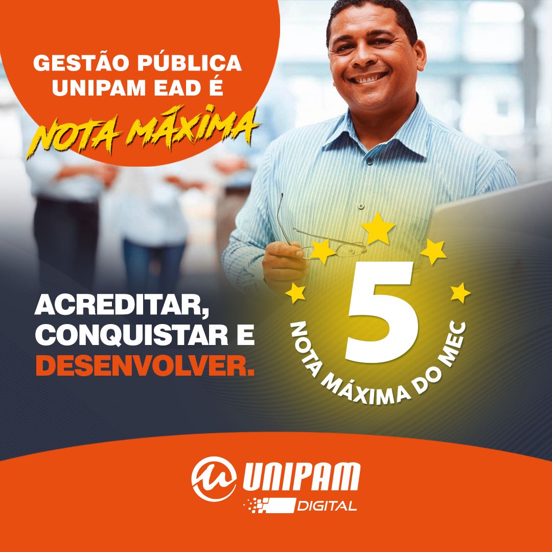 O curso de Gestão Pública, da modalidade de Educação a Distância (EaD) do Centro Universitário de Patos de Minas (UNIPAM), conquistou a nota máxima, conceito 5, na avaliação do Ministério da Educação (MEC). O resultado foi divulgado neste mês.