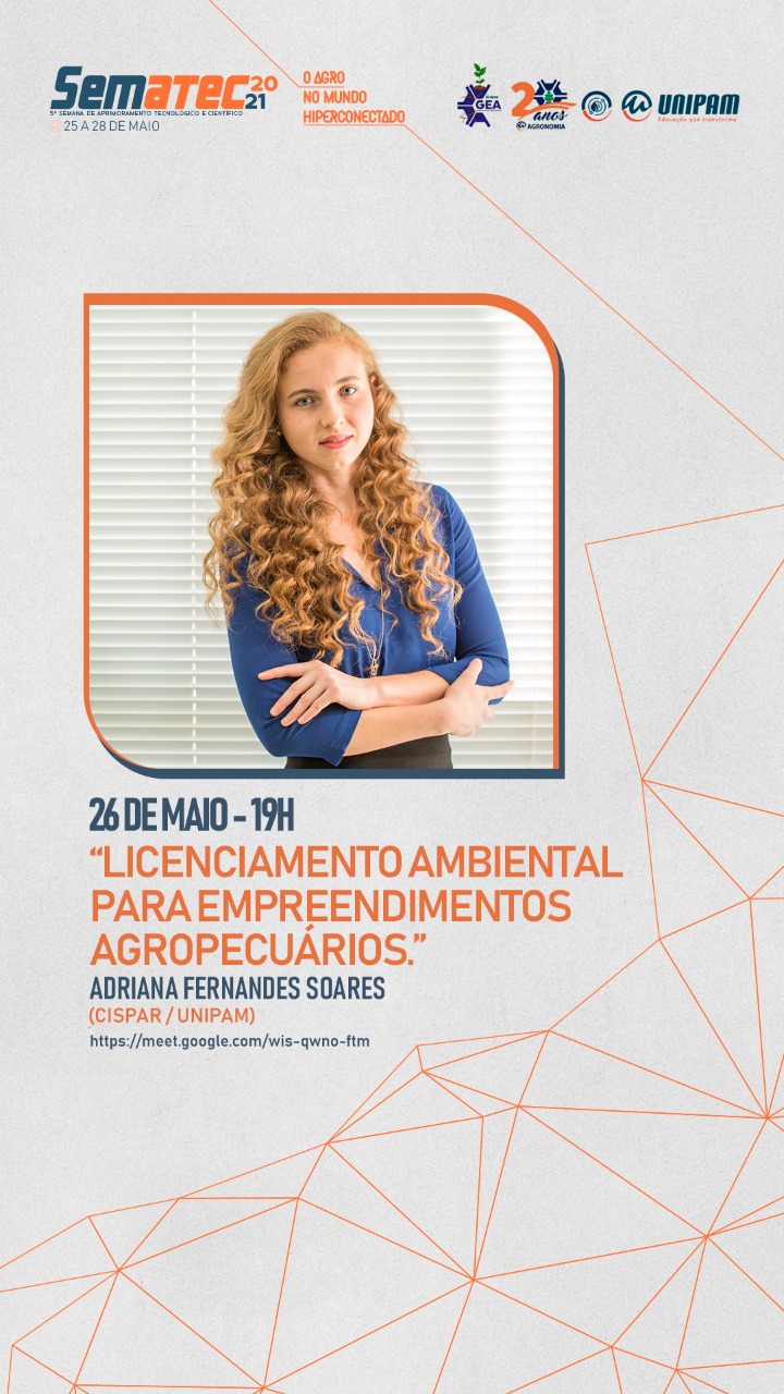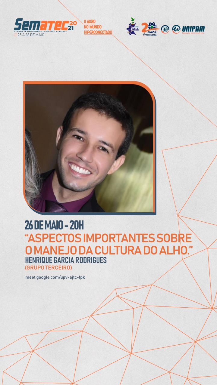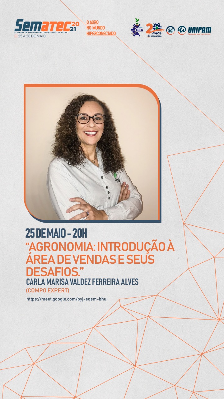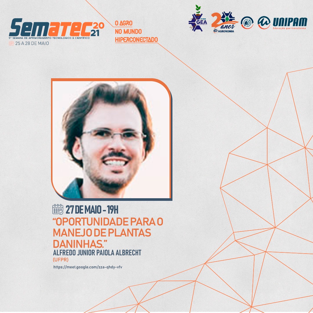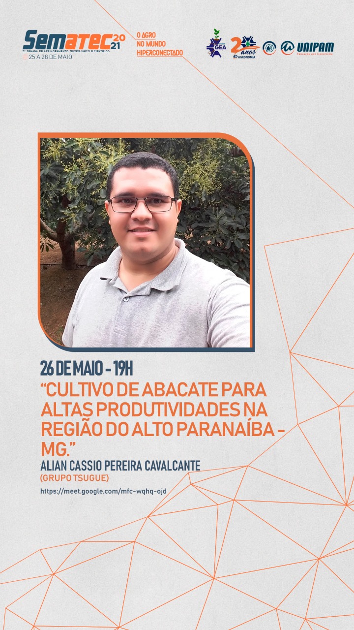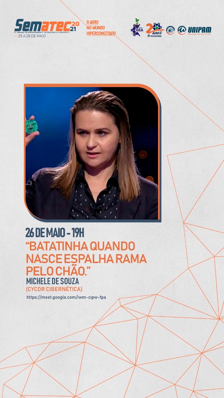O curso de Agronomia do Centro Universitário de Patos de Minas (UNIPAM), promoverá de 25 a 28 de maio, a 5ª Semana de Aprimoramento Tecnológico e Científico (SEMATEC), que tem como tema “O Agro no Mundo Hiperconectado”. O evento acontecerá em formato on-line, por meio da plataforma Google Meet.