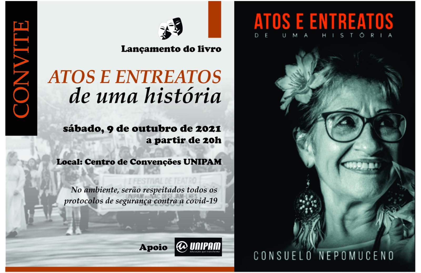 A coordenadora do Núcleo de Arte e Cultura (NAC), do Centro Universitário de Patos de Minas (UNIPAM), professora Consuelo Nepomuceno, fará no dia 09 de outubro (sábado), às 20h, no Centro de Convenções e Eventos (CCE), o lançamento do livro “Atos e Entreatos de Uma História”. O evento contará com apresentação do grupo de Teatro Universitário de Patos de Minas (TUPAM) e do músico Luiz Salgado.