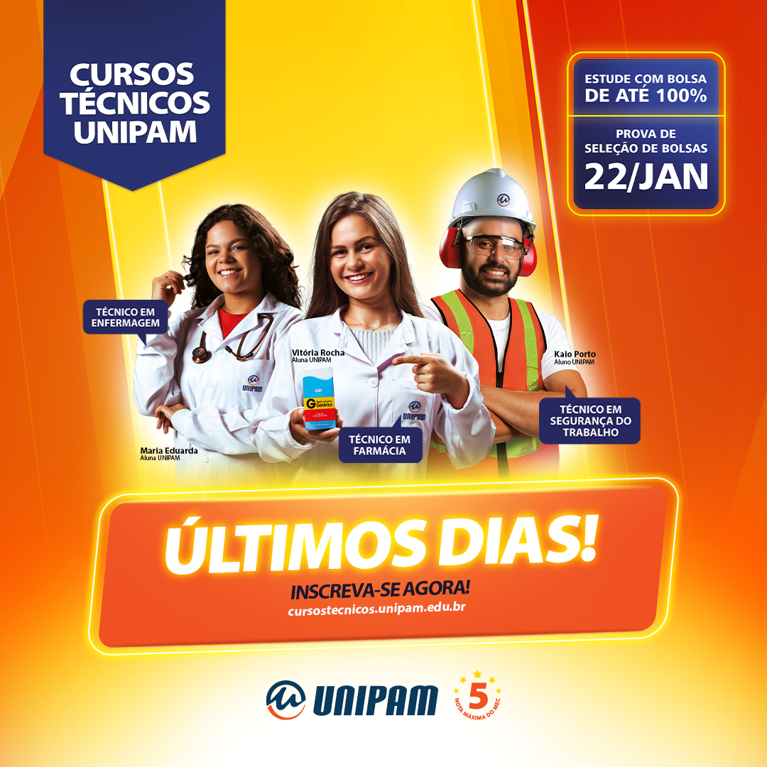 Não perca tempo! Venha fazer um curso técnico no UNIPAM e faça parte da educação que transforma e que não para!