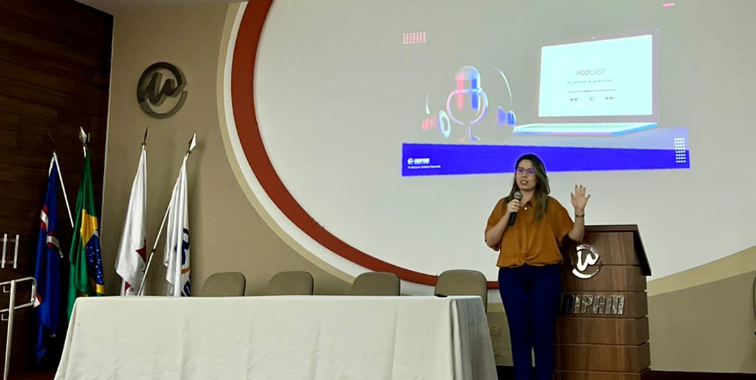 Na oportunidade, a professora Rafaela Resende ministrou sobre o assunto. Na abertura da palestra, ela informou sobre o crescimento do mercado, explicando ser esse o 2º maior em número de consumidores, ou seja, 21 milhões de brasileiros ouvem podcasts diariamente.