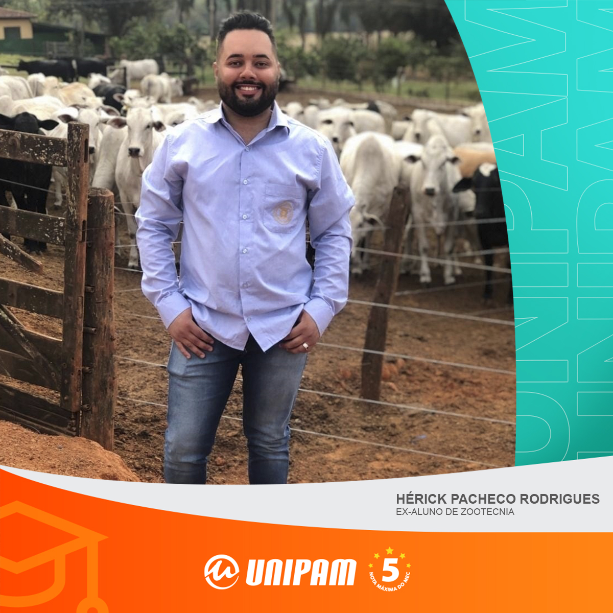 Hérick Pachêco Rodrigues, ex-aluno do curso de Zootecnia do Centro Universitário de Patos de Minas (UNIPAM), foi aprovado neste mês no Programa de Pós-Graduação em Zootecnia, da Universidade Estadual do Sudoeste da Bahia (UESB) - Campus Itapetinga.