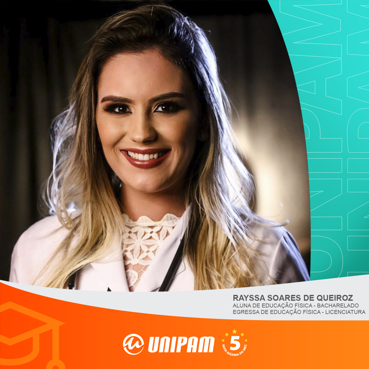Rayssa Soares é, também, egressa do curso de Educação Física – Licenciatura. Ela concluiu o curso em 2021.