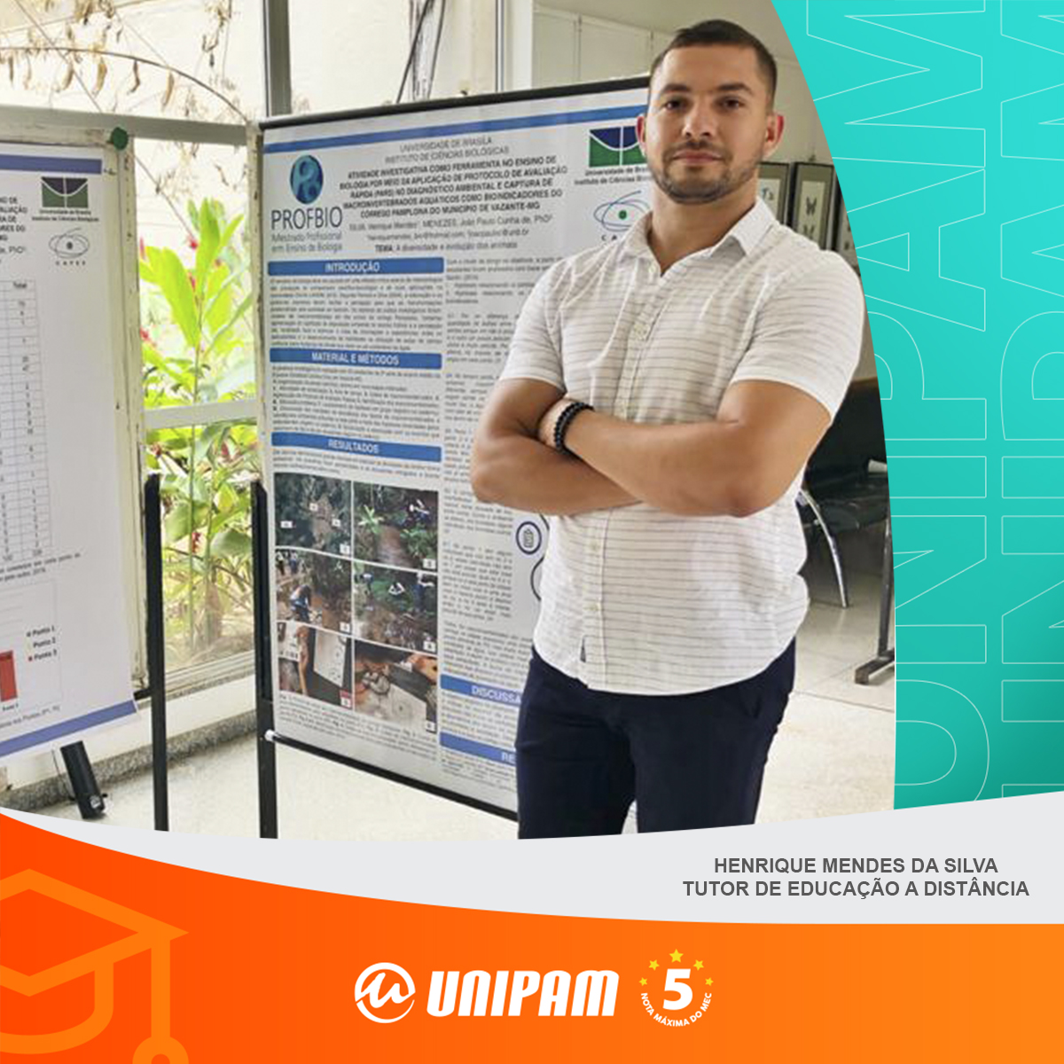 Henrique Mendes da Silva, tutor de Educação a Distância (EaD) do Centro Universitário de Patos de Minas (UNIPAM), foi aprovado no dia 10 de maio (terça-feira) no Programa de Pós-Graduação em Educação em Ciências (PPGEduC) – Doutorado, da Universidade de Brasília (UnB).