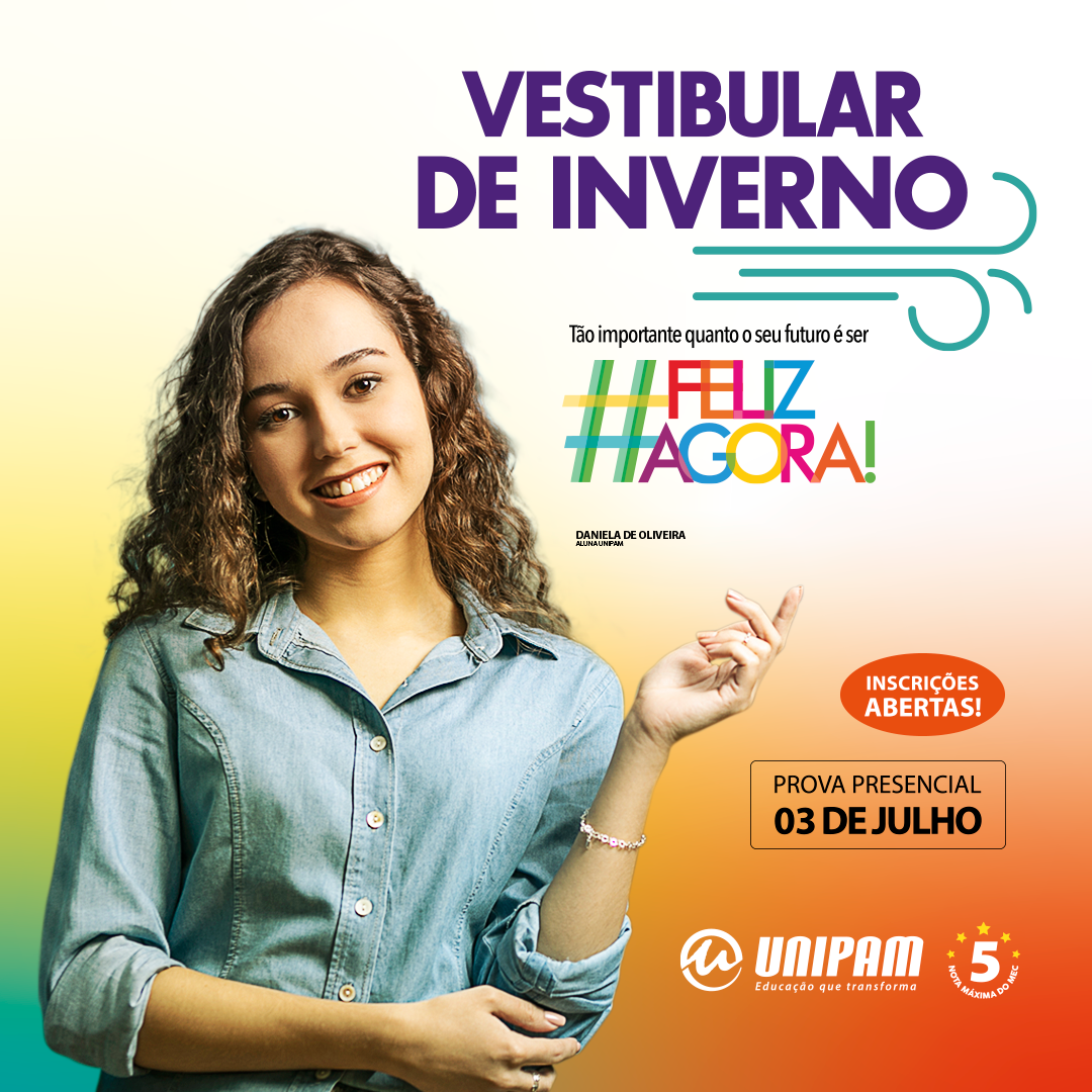 O Centro Universitário de Patos de Minas (UNIPAM) iniciou nesta quinta-feira (09), o período de inscrições para o Vestibular de Inverno. O processo seletivo será realizado, presencialmente, no dia 03 de julho (domingo), das 13h às 16h.