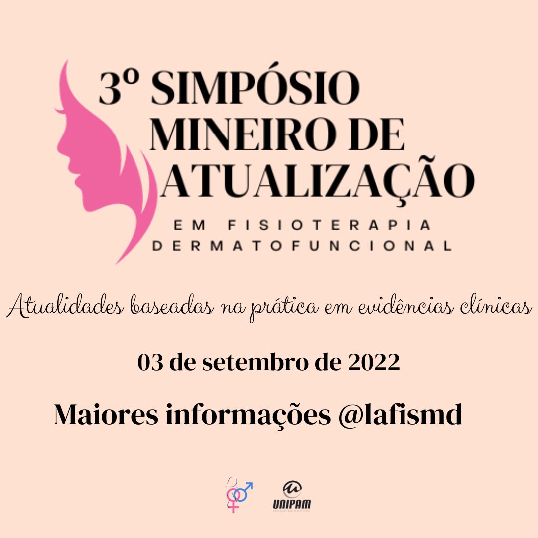 A Liga Acadêmica de Fisioterapia na Saúde da Mulher e Dermatofuncional (LAFISMD), do Centro Universitário de Patos de Minas (UNIPAM), promoverá no dia 03 de setembro (sábado), a partir das 8h, no auditório do bloco N, o “III Simpósio Mineiro de Atualização em Fisioterapia Dermatofuncional”. A LAFISMD é coordenada pelas professoras Kelly Christina de Faria Nunes e Lays Magalhães Braga Barros.
