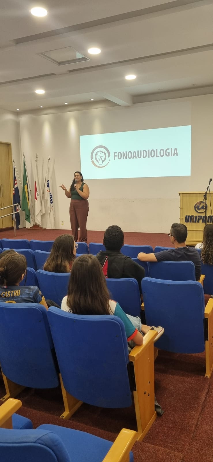 Alunos do 3º ano do Colégio Universitário do Centro Universitário de Patos de Minas (UNIPAM), participaram, recentemente, de uma atividade especial no auditório do bloco E, na qual tiveram a oportunidade de conhecer mais sobre o curso de Fonoaudiologia do UNIPAM.
