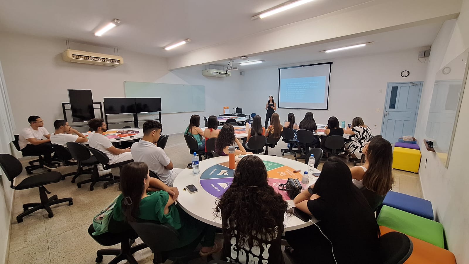 A egressa do curso de Farmácia do Centro Universitário de Patos de Minas (UNIPAM), Ana Clara de Oliveira Teixeira, ministrou recentemente uma palestra para os acadêmicos do 10º período de Farmácia. O encontro, realizado em uma das salas invertidas, fez parte das atividades da disciplina Gestão Farmacêutica, conduzida pelo professor Me. Flávio Daniel Borges de Morais.