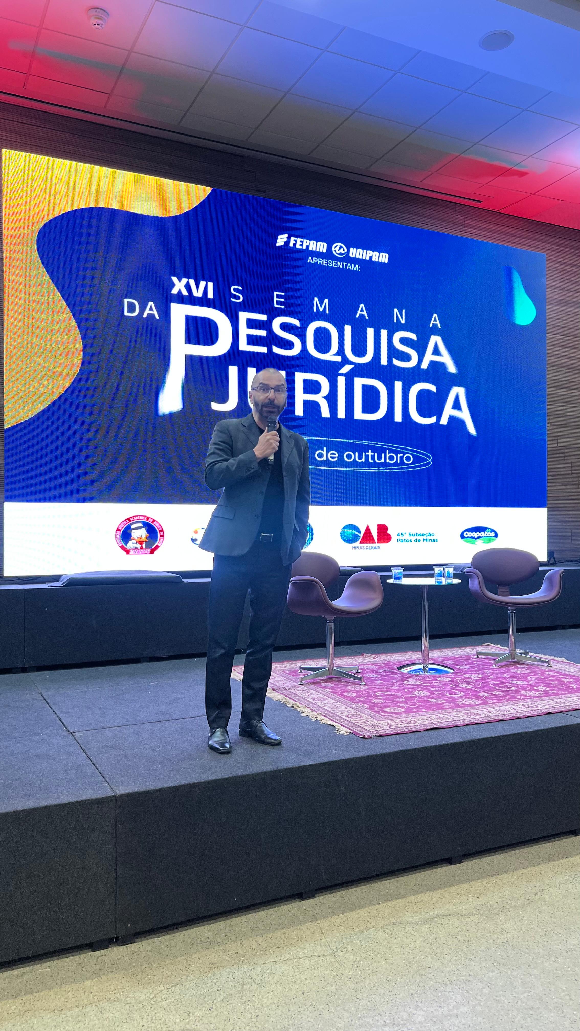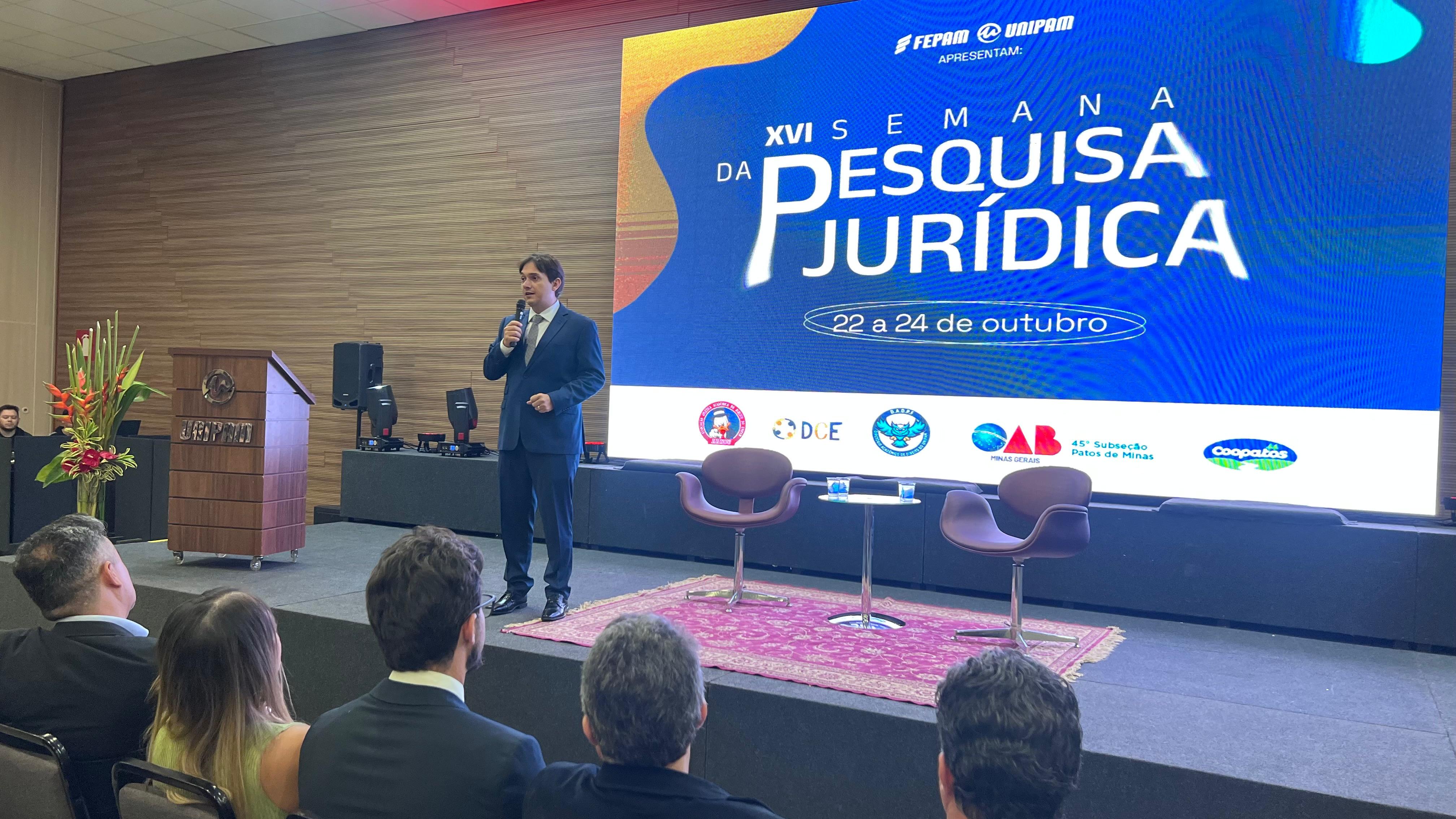 O curso de Direito do Centro Universitário de Patos de Minas (UNIPAM) realizou, entre os dias 22 e 24 de outubro, a 16ª edição da Semana da Pesquisa Jurídica. O evento aconteceu no Salão do Júri e no Centro de Convenções e Eventos da instituição, reunindo acadêmicos, professores e profissionais da área para três dias de aprendizado, troca de experiências e debates sobre temas atuais do universo jurídico.