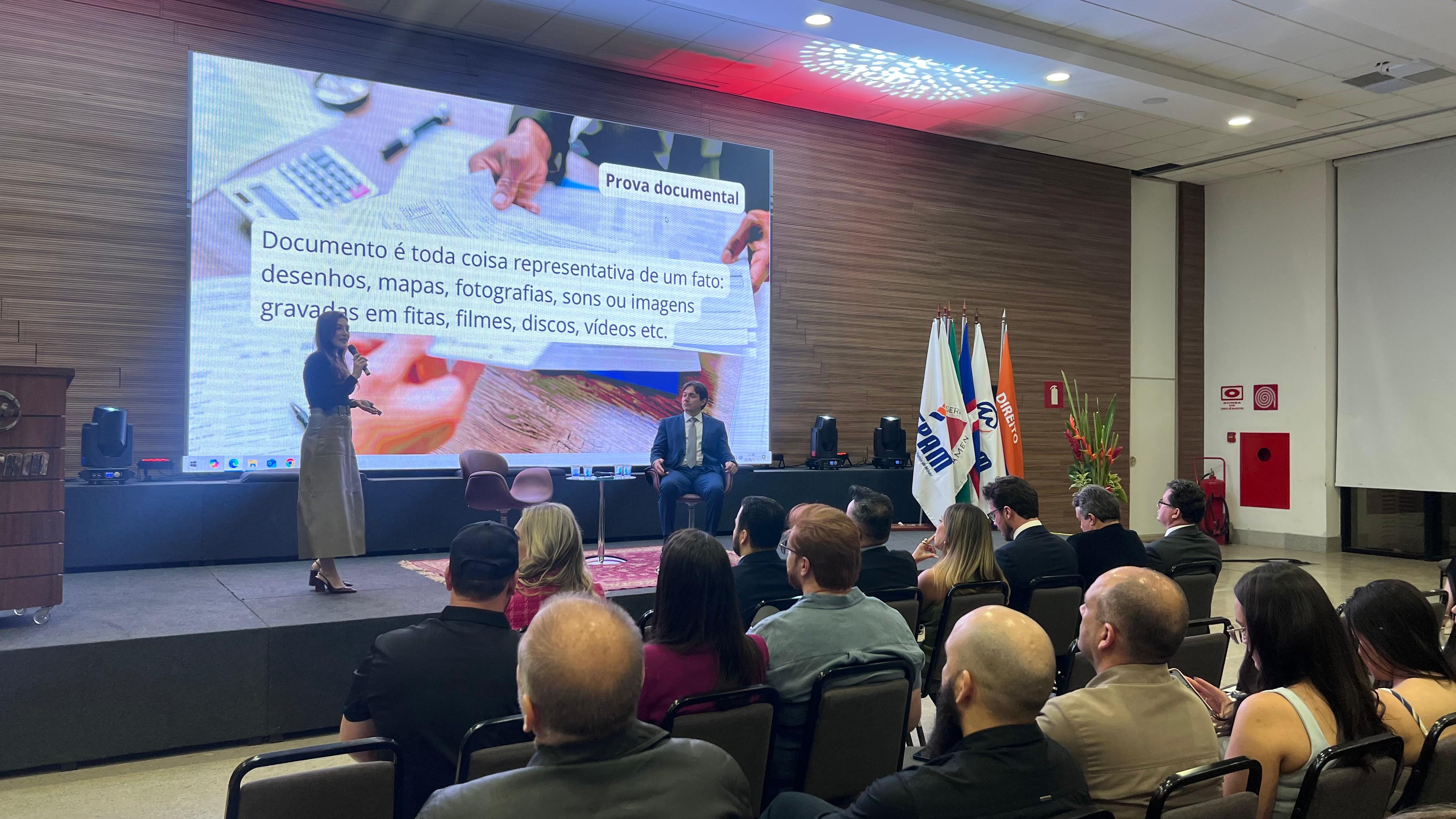 No Centro de Convenções e Eventos, a convidada Behlua Maffessoni ministrou a palestra “Provas Digitais”, abordando a relevância do tema na prática jurídica contemporânea. Ela explicou conceitos fundamentais sobre o assunto e destacou a importância de compreender como comprovar autoria, integridade e a utilização de provas digitais em processos judiciais.