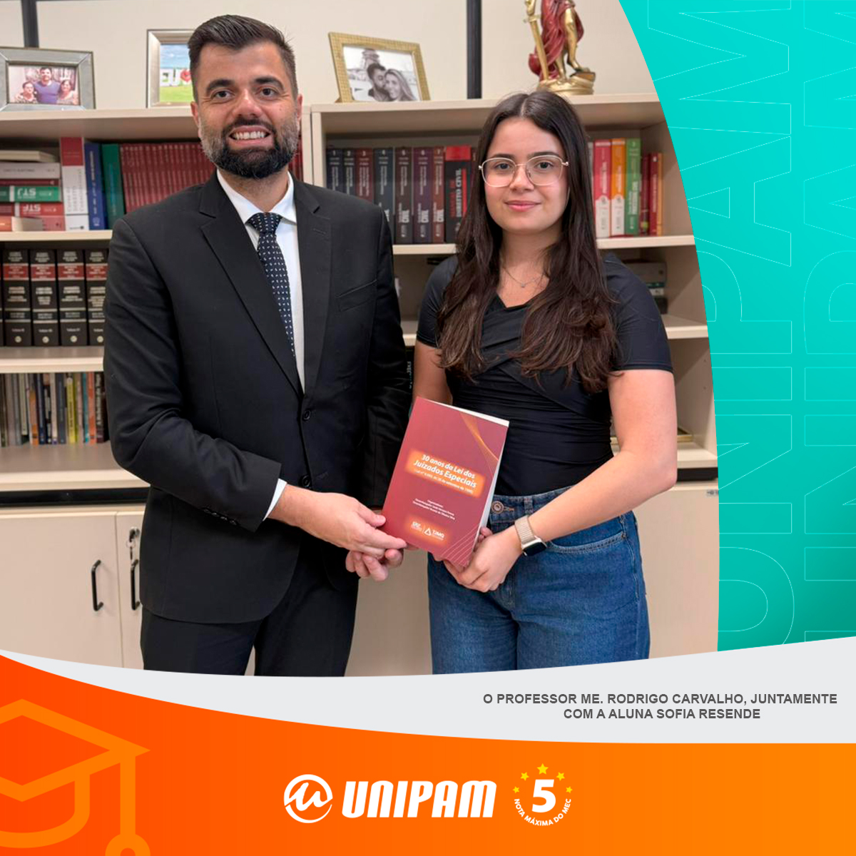 O professor Me. Rodrigo Carvalho Assumpção e a aluna do 6º período do curso de Direito do Centro Universitário de Patos de Minas (UNIPAM), Sofia Resende de Deus, participaram da obra coletiva do Tribunal de Justiça de Minas Gerais (TJMG) intitulada “30 anos da Lei dos Juizados Especiais”. O livro foi lançado no dia 10 de novembro (segunda-feira), no Auditório do Tribunal Pleno do TJMG, durante o seminário comemorativo pelos 30 anos da Lei nº 9.099/95.
