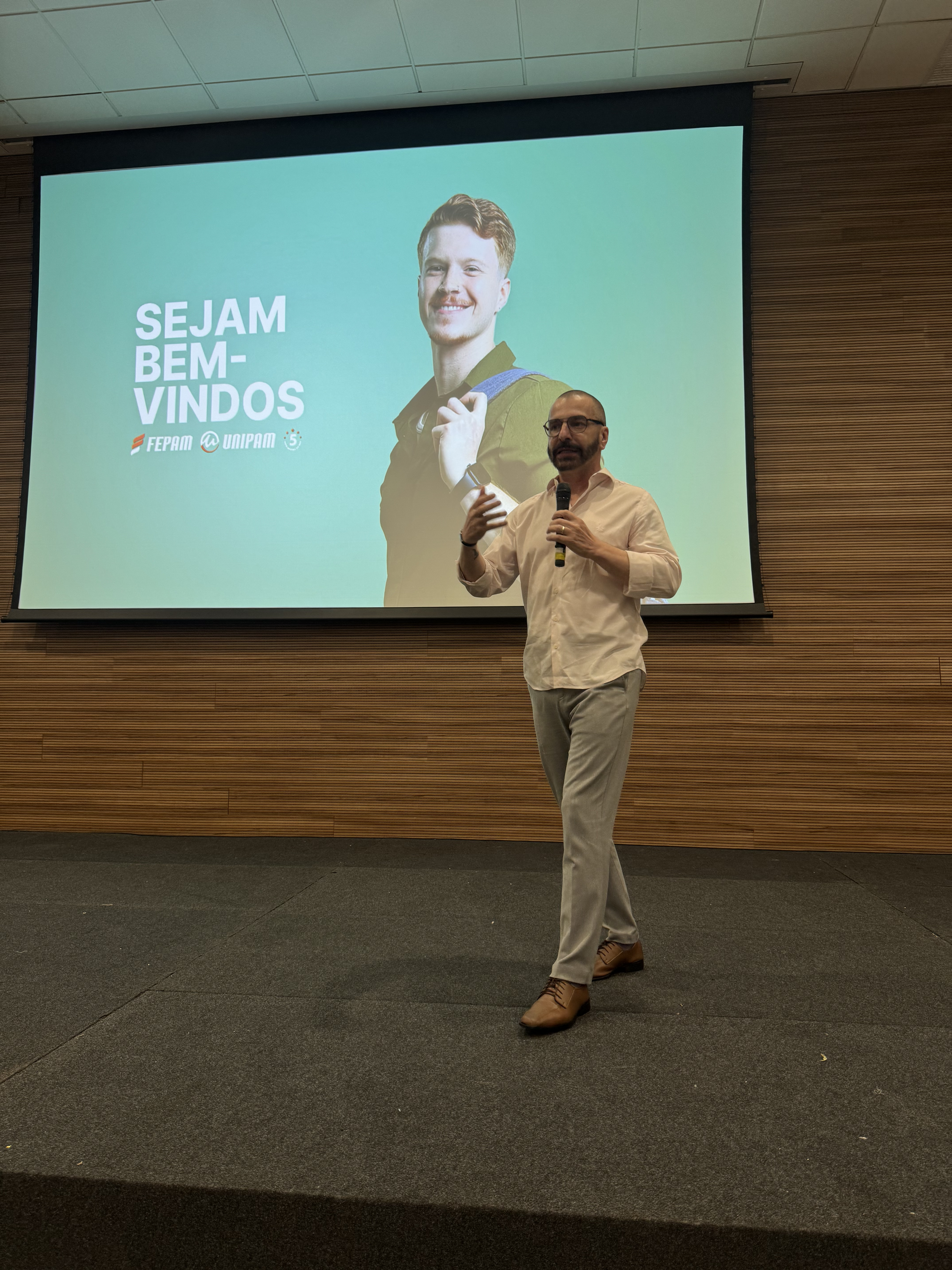 Inicialmente, o presidente da Fundação Educacional de Patos de Minas (FEPAM), Sr. Paulo Vinícius Piva Hartmann, fez o pronunciamento de abertura do evento.