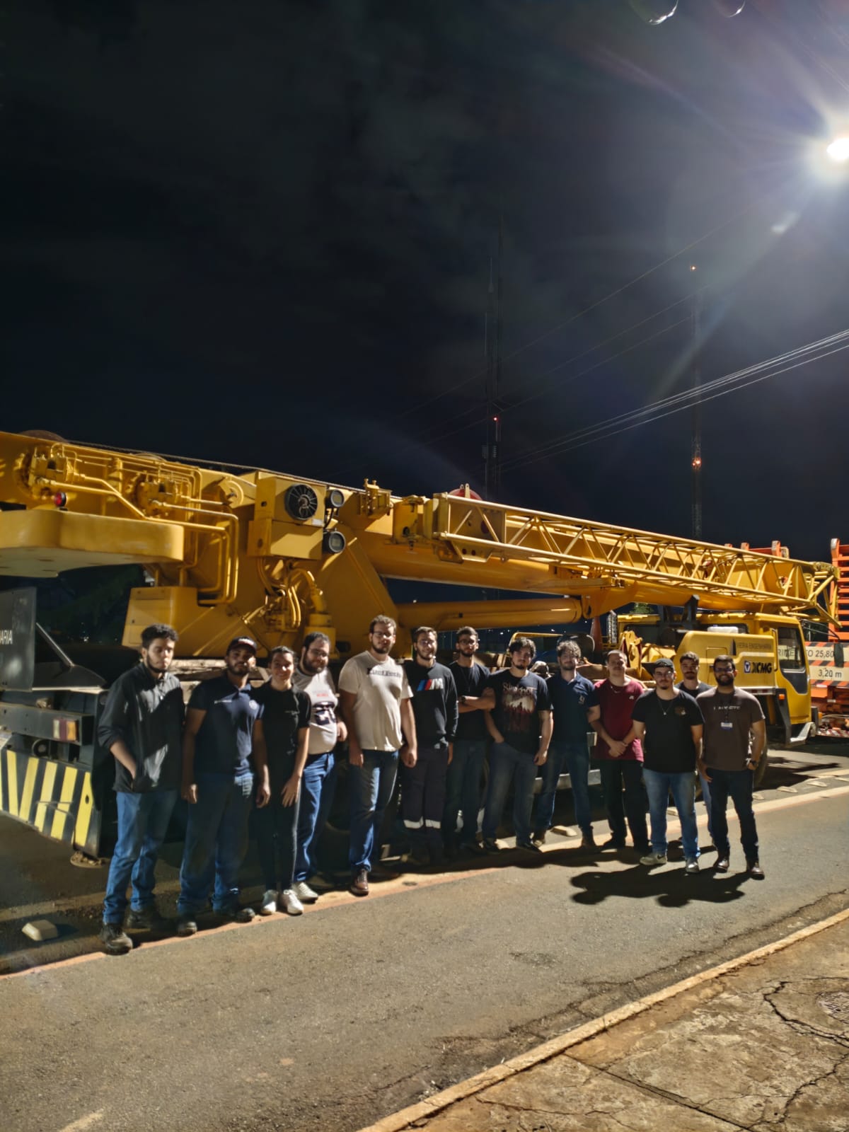 Um dos momentos de maior destaque foi a demonstração prática do funcionamento e da operação de equipamentos de elevação, como guindastes e caminhões munck, amplamente utilizados na movimentação de cargas pesadas. Os alunos puderam observar, de forma detalhada, aspectos relacionados à segurança, à estabilidade, à capacidade de carga e às técnicas operacionais, fundamentais para a utilização eficiente desses equipamentos.
