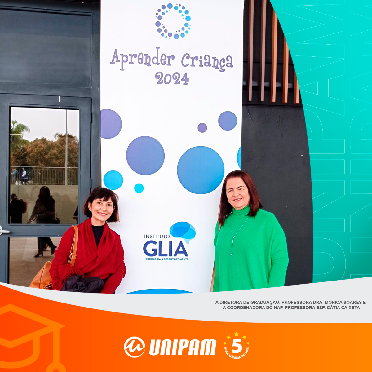 A professora Dra. Mônica Soares de Araújo Guimarães, Diretora de Graduação do Centro Universitário de Patos de Minas (UNIPAM), e a professora Esp. Cátia Aparecida Caixeta, coordenadora do Núcleo de Apoio Psicopedagógico (NAP) da instituição, participaram, de 1º a 03 de agosto, em São Paulo, do “Congresso Aprender Criança/2024”.