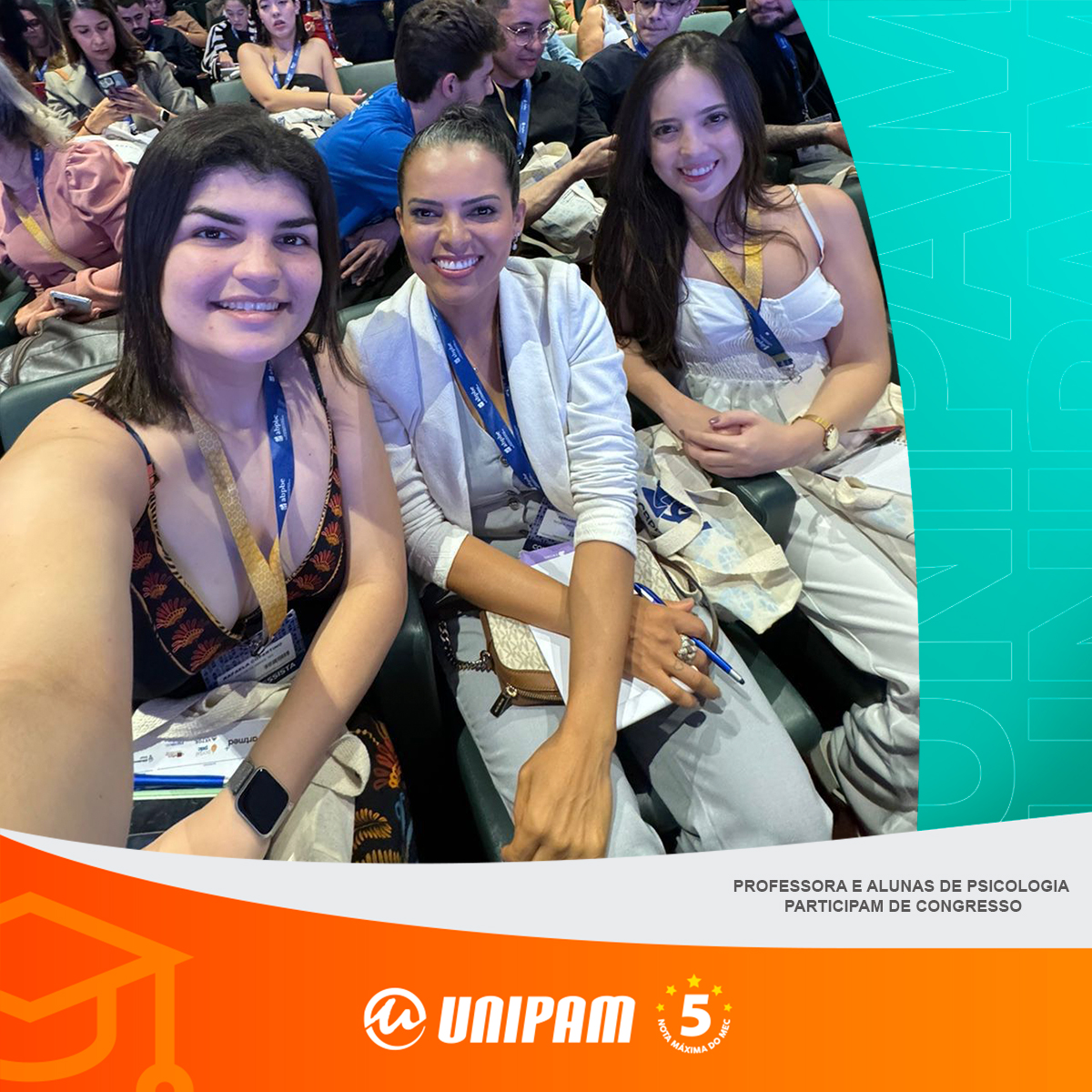 Natália Maria Pereira Caixeta, professora do curso de Psicologia do Centro Universitário de Patos de Minas (UNIPAM), juntamente com as alunas do 10º período do curso, Fernanda Sâmara Silva, Júlia Beatriz Rocha de Paula e Rafaela Aparecida Cupertino Pio, participaram do “III Congresso Brasileiro de Psicologia Baseada em Evidências”. O evento foi realizado, de 19 a 22 de agosto, em Belo Horizonte (MG).
