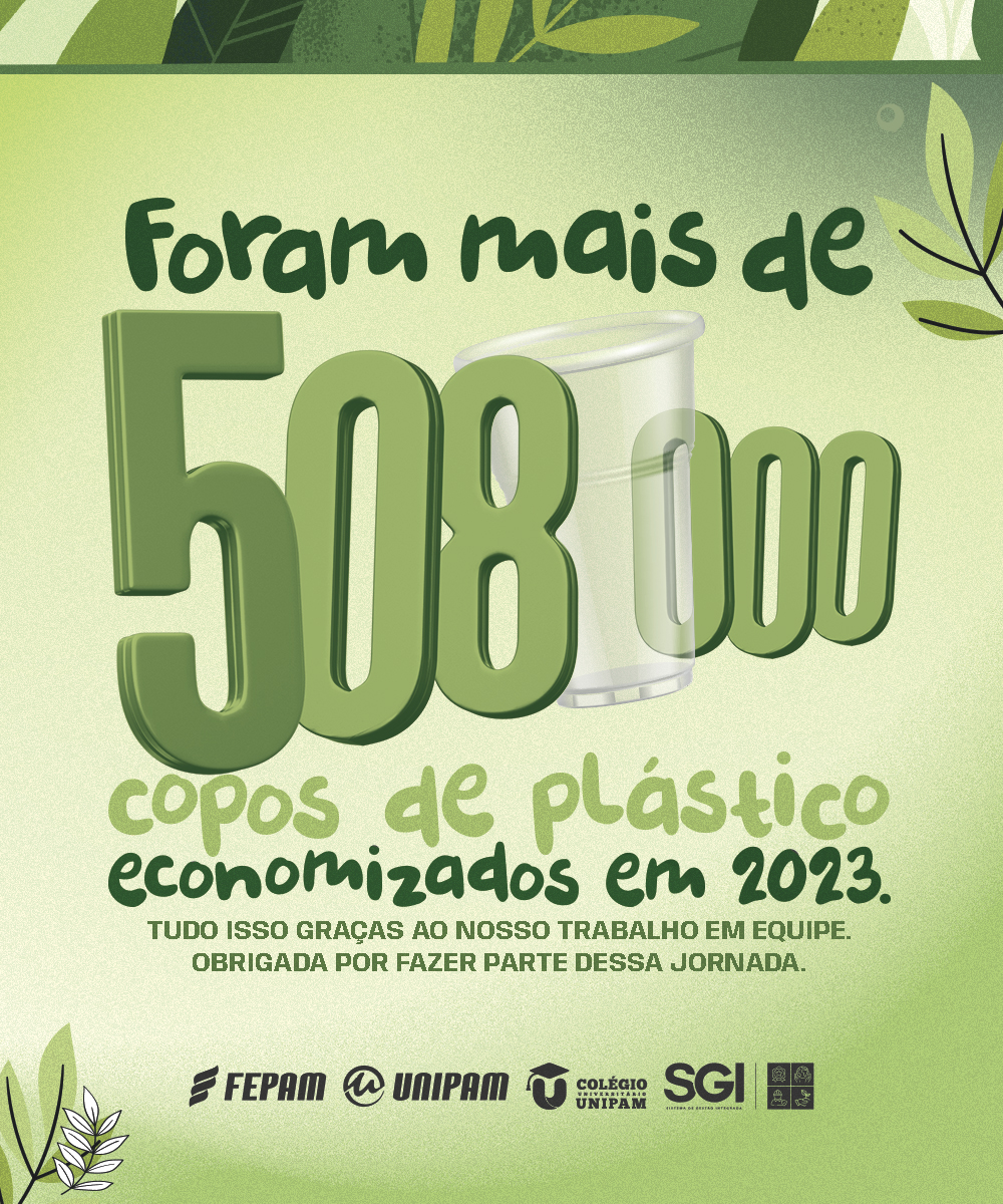 Em 2023, foram economizados mais de 508 mil copos plásticos representando um marco significativo na promoção de práticas sustentáveis na instituição. O UNIPAM continuará com o esforço até que os copos descartáveis sejam completamente eliminados, reforçando seu compromisso com a preservação ambiental.