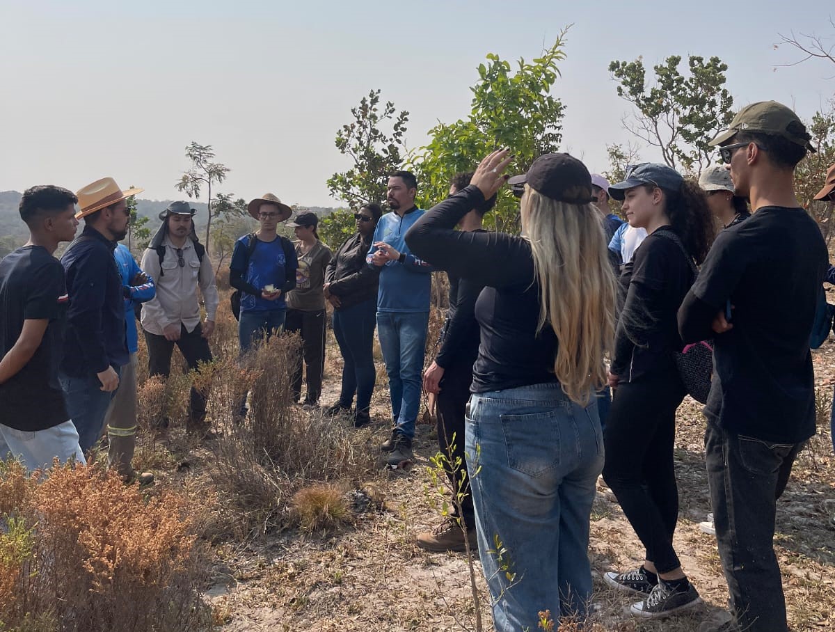 Durante a manhã, os alunos visitaram uma área de compensação ambiental gerida por uma mineradora. A área, que estava degradada, passa por revitalização com o plantio de espécies nativas, tais como: ipês e pequis. A visita permitiu aos alunos observarem, na prática, os impactos positivos das ações de restauração ambiental e o papel das empresas na compensação de danos ao meio ambiente. Ainda foi possível visitar uma vereda, uma formação típica do cerrado brasileiro, que são essenciais para a recarga dos aquíferos e abrigo para diversas espécies da fauna e da flora.