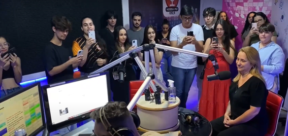 A professora Regina Macedo explica a importância da visita técnica. “Entender as mídias permite que eles sejam produtores mais conscientes e éticos de conteúdo, capazes de navegarem e inovarem em um mundo cada vez mais digitalizado e conectado”, explicou Regina Macedo.