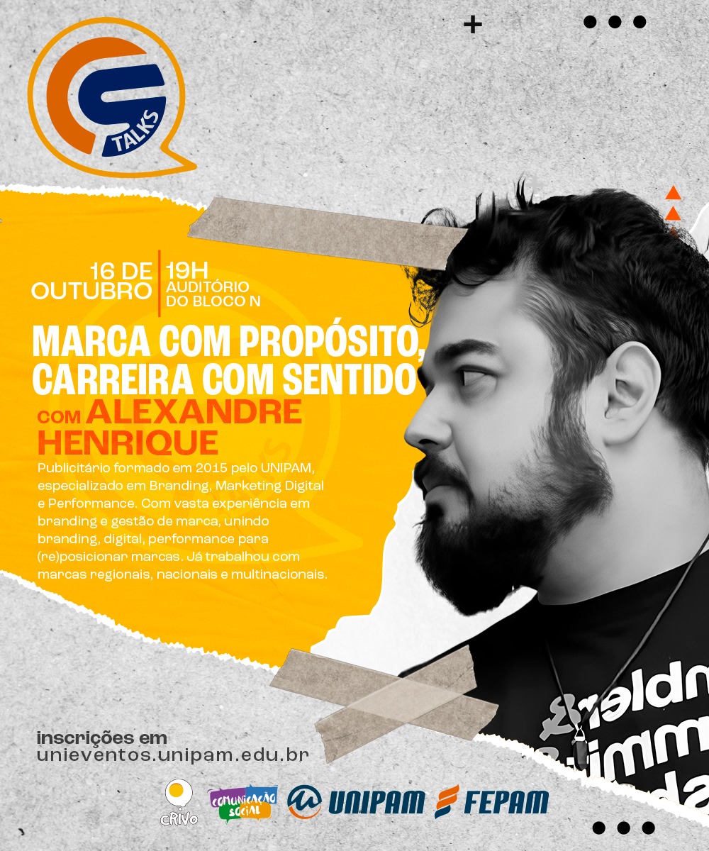 Com o tema “Marca com Propósito, Carreira com Sentido”, o publicitário Alexandre Henrique enfocará, principalmente, como as marcas mais autênticas são guiadas por um propósito claro e como carreiras podem ser construídas com base em valores e significados profundos. Ele destacará, ainda, como profissionais podem alinhar suas trajetórias com um propósito que ressoe com seus objetivos de vida e o impacto que desejam gerar no mundo. “Vamos discutir como desenvolver marcas que sejam fiéis a seus valores, ao mesmo tempo em que constroem uma carreira significativa e impactante”, explicou Alexandre Henrique.